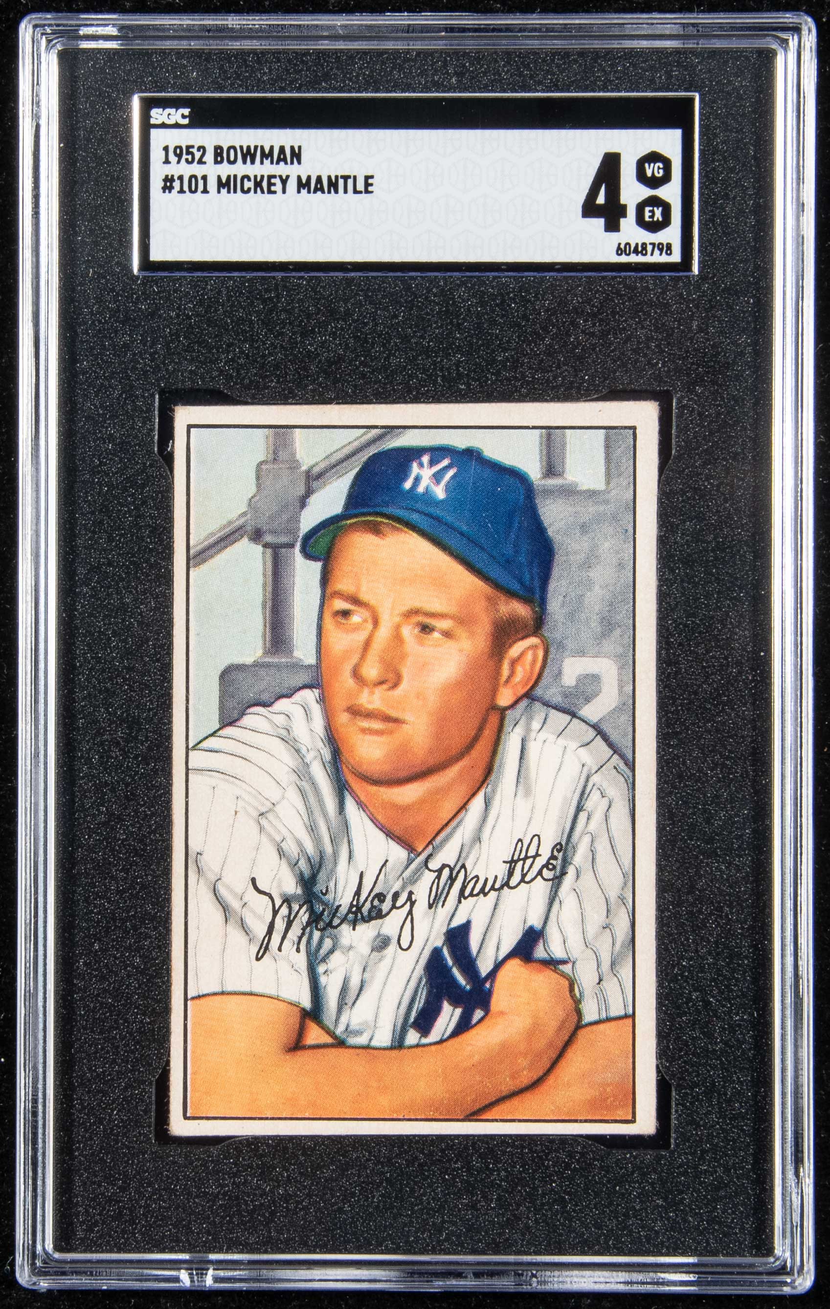 1952 Bowman #101 Mickey Mantle (SGC 4 VG-EX). Desirable card issued during Mantle's second season. Slight touch to corners: SGC 4 VG EX