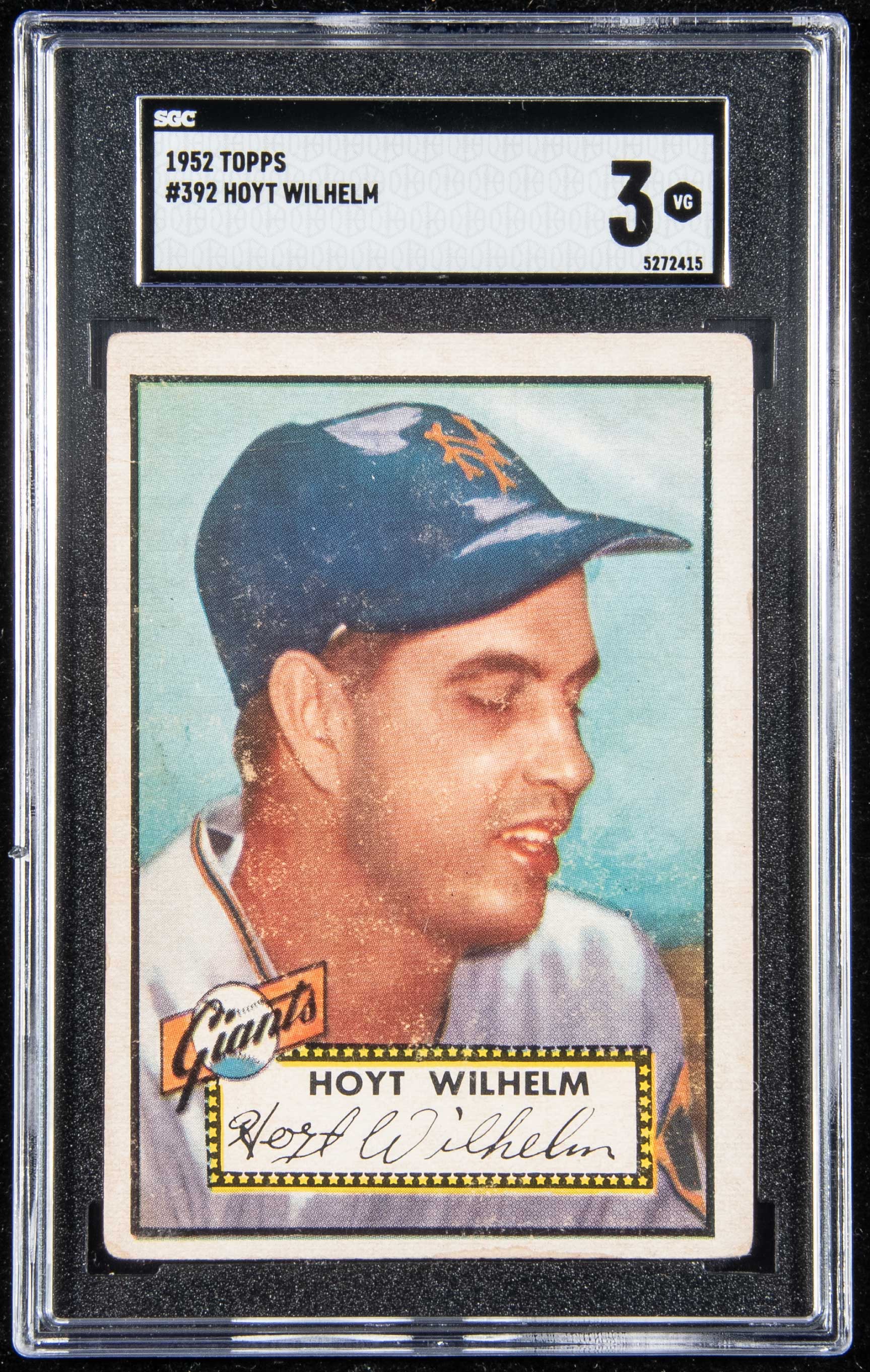 1952 Topps #392 Hoyt Wilhelm Rookie (SGC 3 VG). Hall of Fame Rookie card with scattered wear throughout: SGC 3 VG