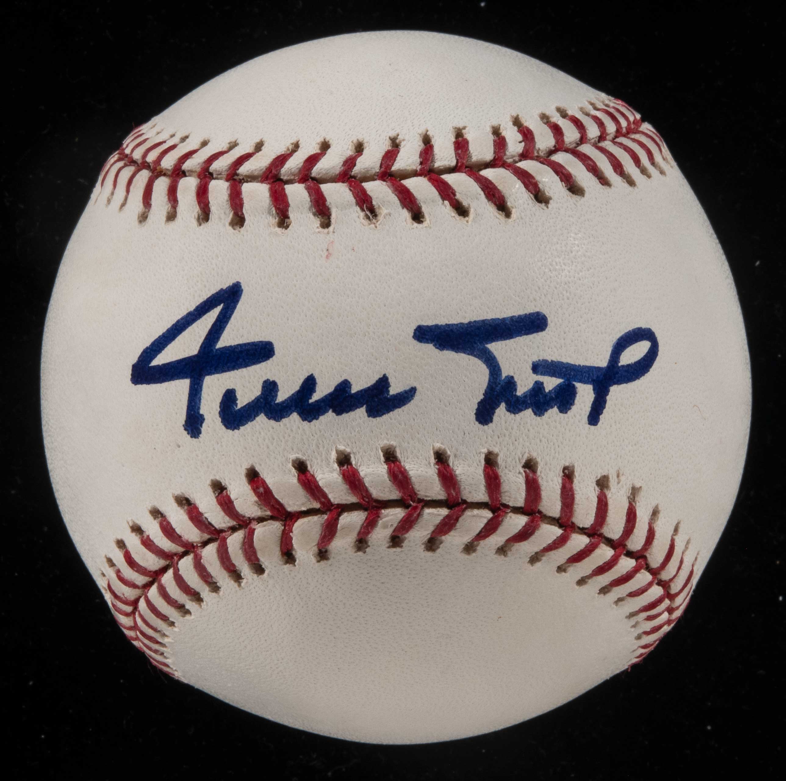 Description:Willie Mays single signed baseball (PSA/DNA 10 GEM MINT). Unused white A.Selig MLB baseball signed across the sweet spot by Willie Mays in blue felt tip marker with notably bold signature strength and flawless formation. The autograph was assigned the highest grade of 10 out of 10 by PSA/DNA and was among the very finest condition exemplars from a small overall total signed baseball group in the Mays Collection. Includes full LOA from PSA/DNA (10 GEM MINT) and certificate of provenance from the Willie Mays Collection: GEM MINT