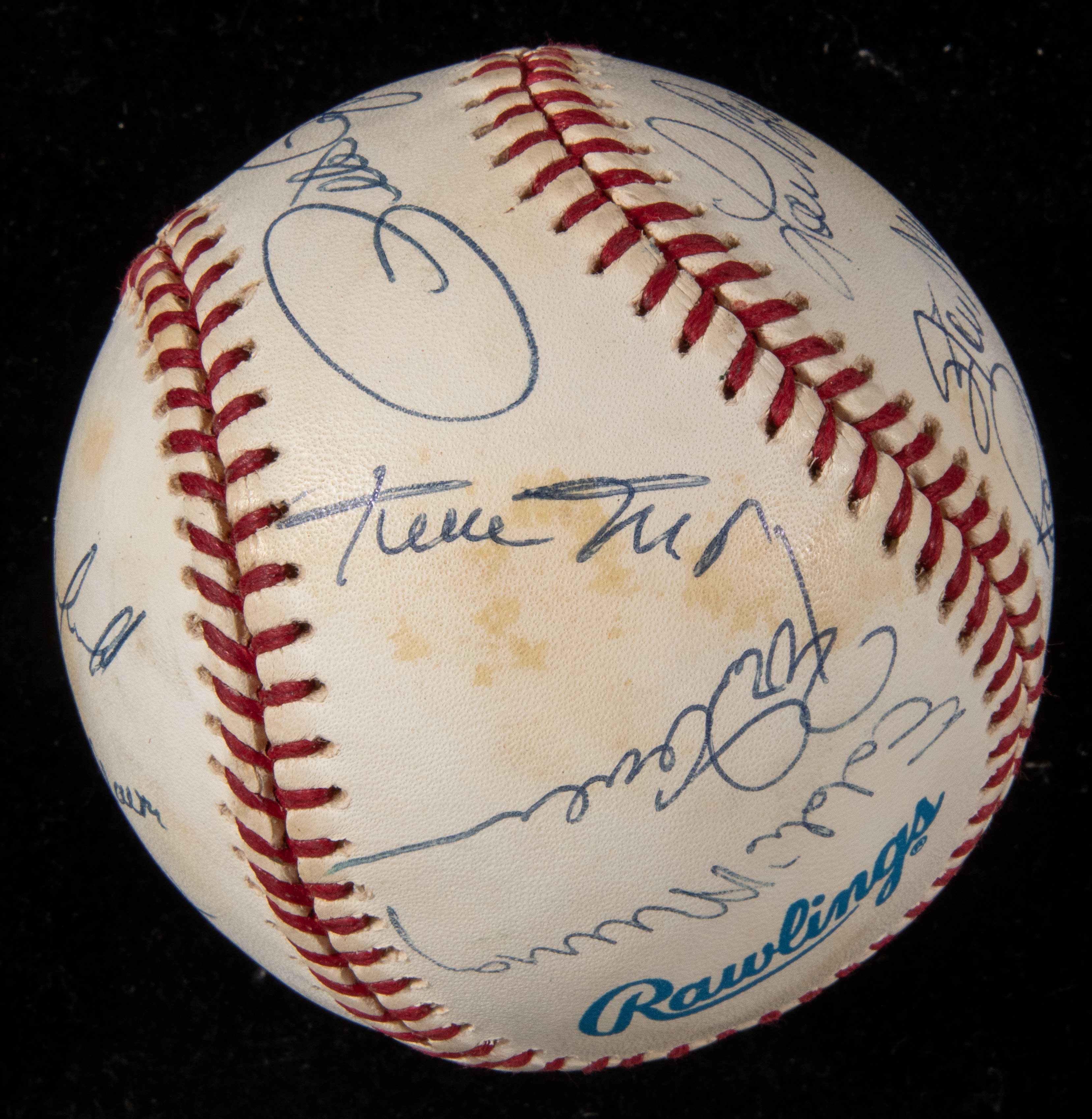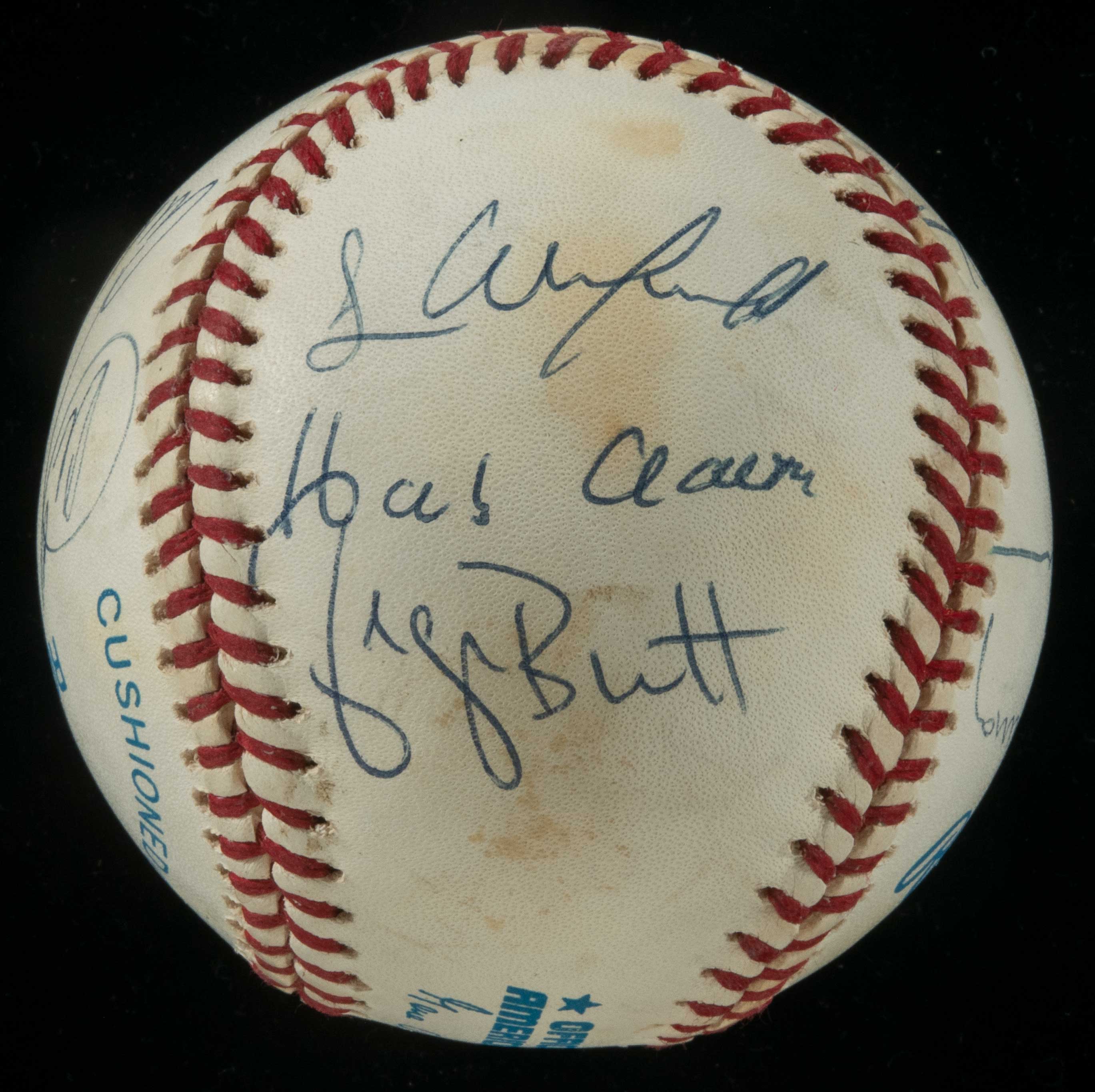 Description:3,000 Hit Club autographed baseball from the Willie Mays Collection. G.Budig AL baseball signed by Rose, Mays, Carew, Murray, Yastrzemski, Kaline., Brock, Musial, Yount, Brett, Aaron, and Winfield. Blue ink signatures range from 8-10 out of 10 with the ball itself having a few minor age toning spots. Includes auction LOA from JSA and certificate of provenance from Willie Mays Collection: Ball: EX-EX/MT, Signatures: Range NM-NM/MT