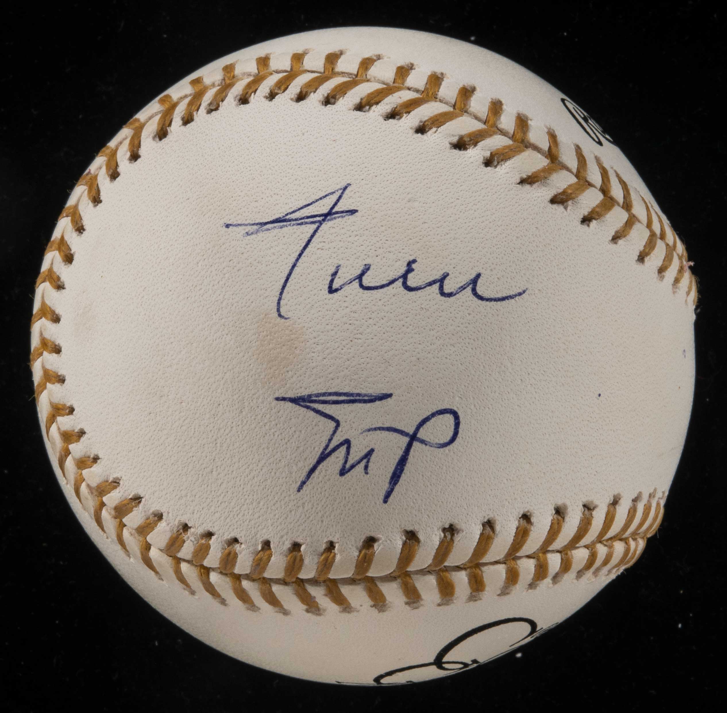 Description:Rare Willie Mays single signed and "HOF 79" inscribed Gold Glove baseball. Rawlings Gold Glove commemorative baseball signed by Mays in blue ink on side panel adding very rare "HOF 79" inscription to the adjacent sweet spot. Signature rates 8 out of 10 with the ball having two small light age toning spots. Extremely rare signed and inscribed Gold Glove baseball from one of the prolific defensive players in MLB history. Includes auction LOA from JSA and certificate of provenance from the Willie Mays Collection: Signature: NM-MT, Ball: NM