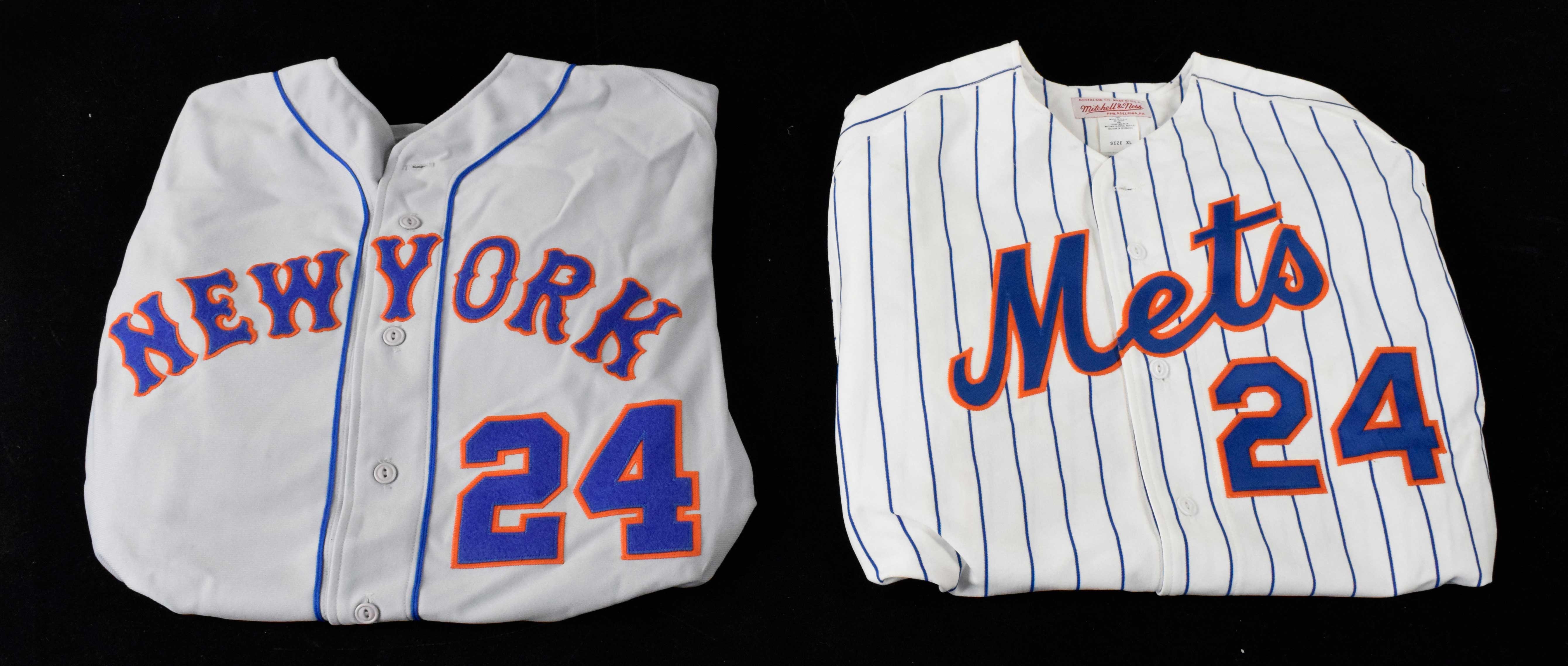 Description:Pair of Willie Mays New York Mets replica jerseys by Mitchell & Ness. Set of road and home replica jerseys by Mitchell & Ness both of the 1972-73 knit style that Willie Mays wore with his final MLB team. Size for each is XL. Includes certificate of provenance from the Willie Mays Collection: Range NM-MT