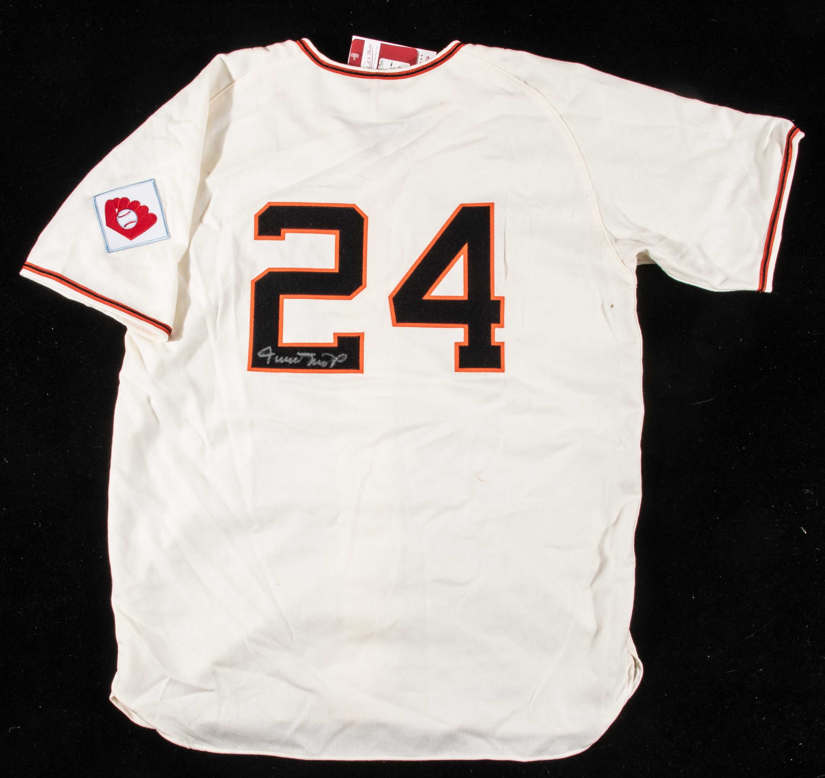 Description:Willie Mays autographed 1951 New York Giants Mitchell & Ness jersey. Top of the line throwback jersey by Mitchell & Ness has "Willie Mays" and "1951" embroidered on the front tail tails and a retro 75th Anniversary of the National League patch on one sleeve. Size (48). Signed on the back number in silver marker rating 7/8 out of 10. Includes auction LOA from JSA and certificate of provenance from the Willie Mays Collection: EX/MT-NM