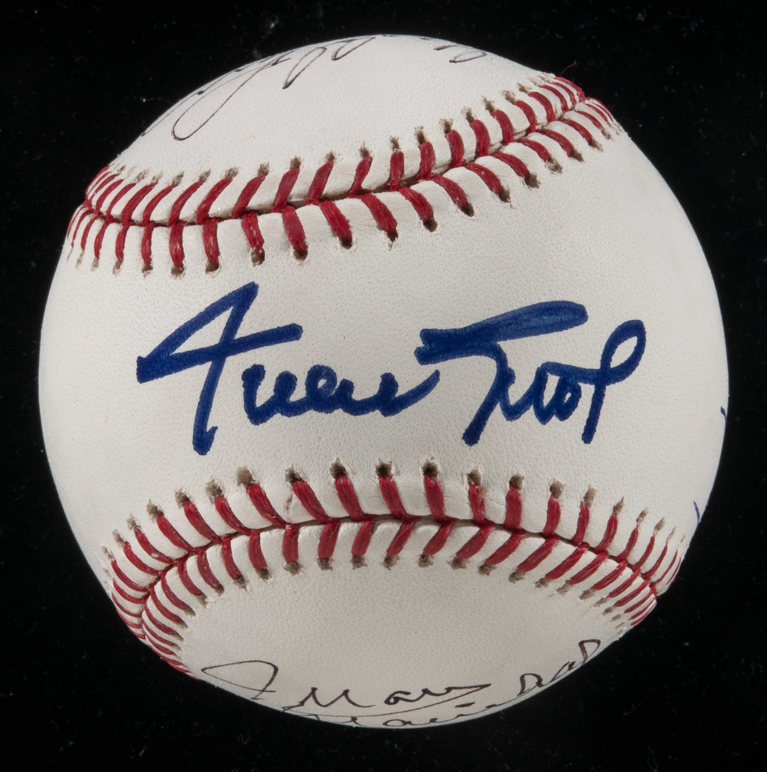 Description:San Francisco Giants Hall of Fame Members autographed baseball from the Willie Mays Collection. A.Selig MLB baseball signed by four San Francisco Giants and National Baseball Hall of Fame players including Willie Mays, Willie McCovey, Gaylord Perry, and Juan Marichal. Signatures range from 8-9 out of 10. Fine signature baseball of the most iconic Hall of Fame players in team history from the personal collection of the primary member of that club. Includes auction LOA from JSA (autographs) and certificate of provenance from the Willie Mays Collection: Ball: NM, Signatures: NM-MT