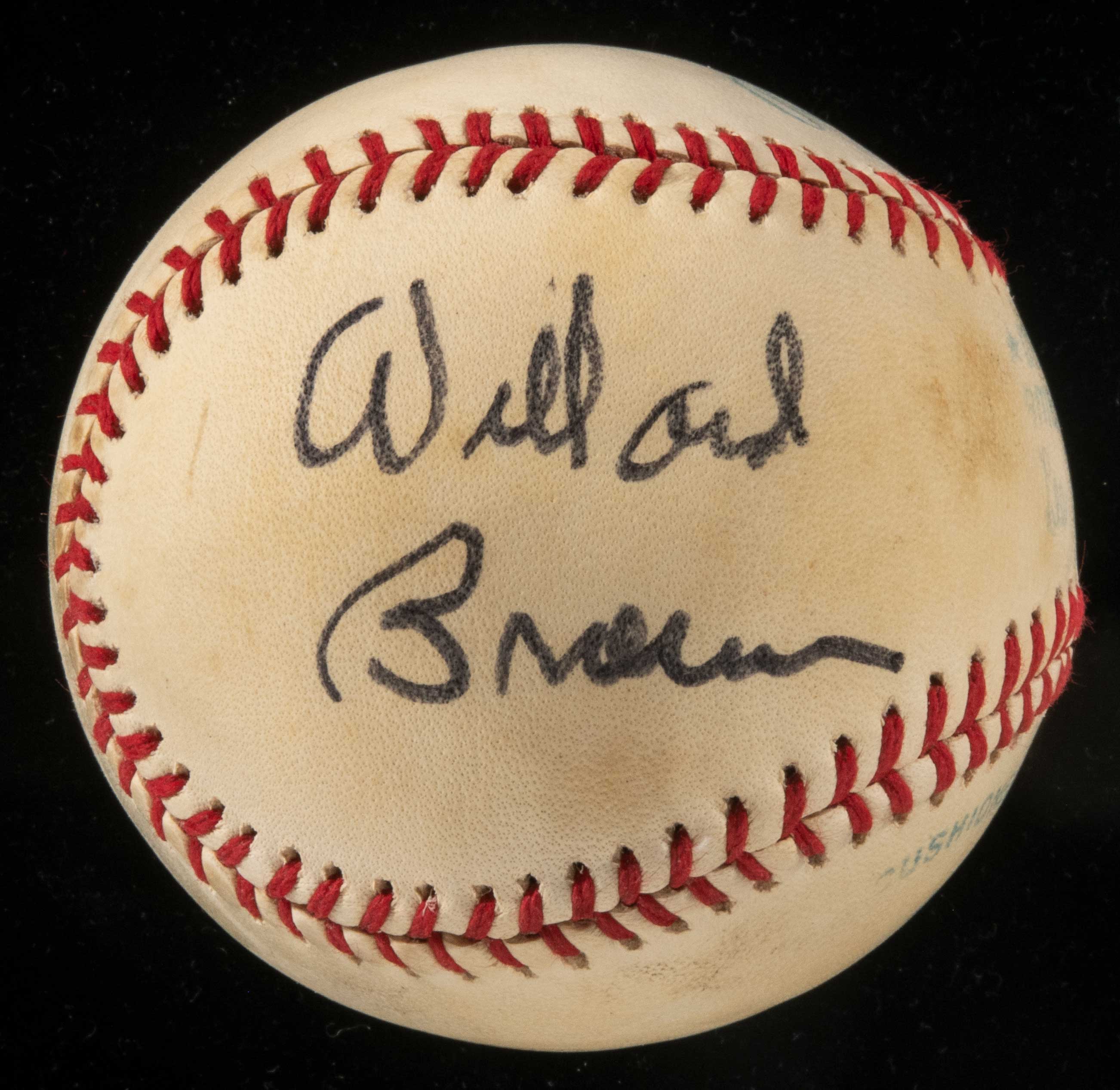 Description:Willard Brown single signed baseball. Rawlings L.MacPhail Official American League baseball has been signed "Willard Brown" on a side panel. Fiber tipped marker signature rates 8 out of 10. Mild toning throughout and there is an abrasion/area of wear on the sweetspot. Brown was a power hitting center fielder who helped lead the Kansas City Monarchs to (6) pennants during the 1930s and 40s. He won a pair of Triple Crowns while playing in the Puerto Rican Winter League and was the first African American to hit a home run in the American League during a short stint with the St. Louis Browns. Includes full LOA from JSA: Sig. NM, Ball GD
