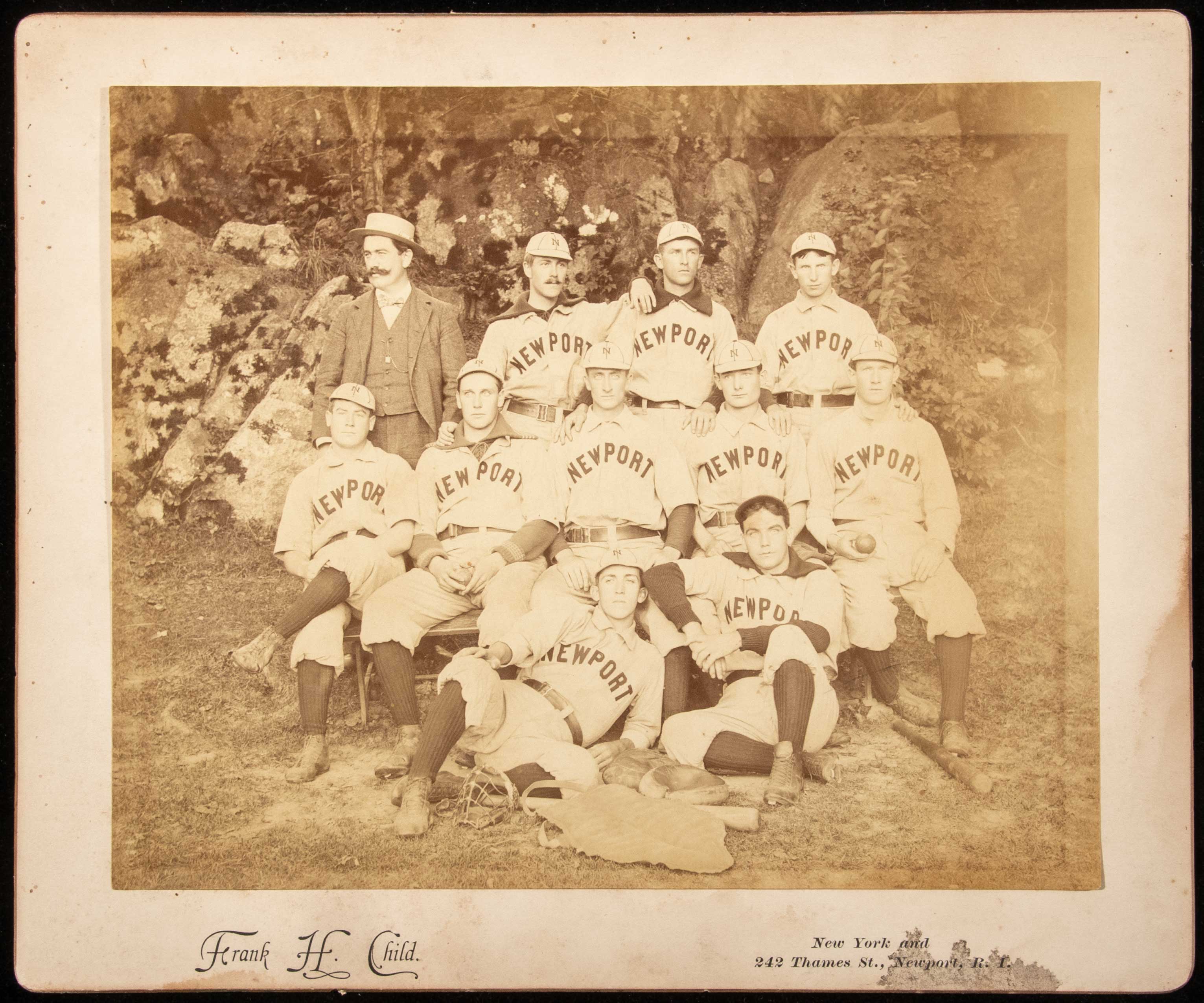 Description:Newport Colts team cabinet photograph c.1897-99: New England League Championship era. Choice sepia toned photograph showing uniformed team members remains on the original 10"x12" mount which is marked, "Frank H. Child…New York and…Rhode Island." Light toning and a touch of age related wear with a small stain to lower right (effecting only the mount). The Colts began play in the New England League in 1897 and would capture the Championship title that same season. The would remain in operation, on and off as League finances dictated, through 1899: VG