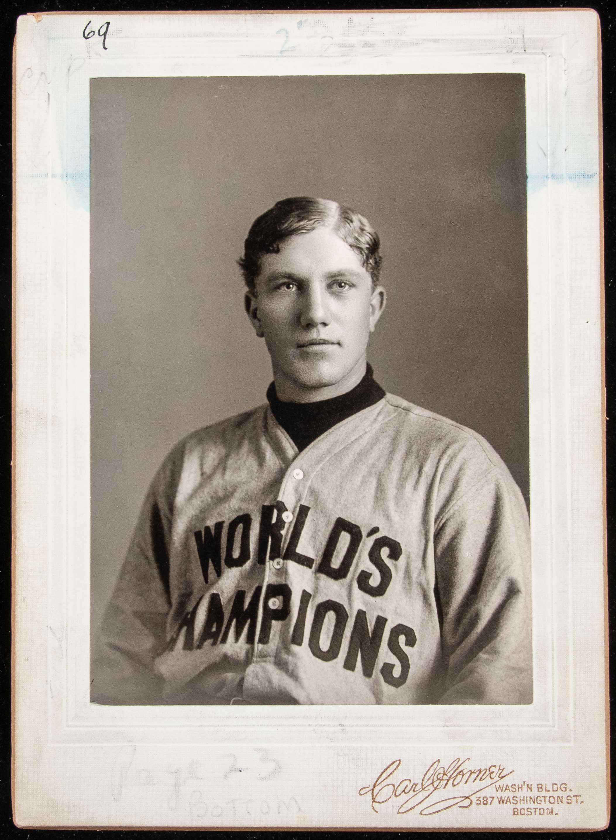 Description:Cecil Ferguson cabinet photograph by Carl Horner c.1906. Sepia toned studio portrait remains on its' original "Carl J. Horner" marked 5"x7.25" mount. Light/mild scattered wear and there are a number of publication related marking on both front and back. Additional identifiers appear on the back along with a "Baseball" stamp and "Baseball Magazine" archive hologram: FR/GD-GD