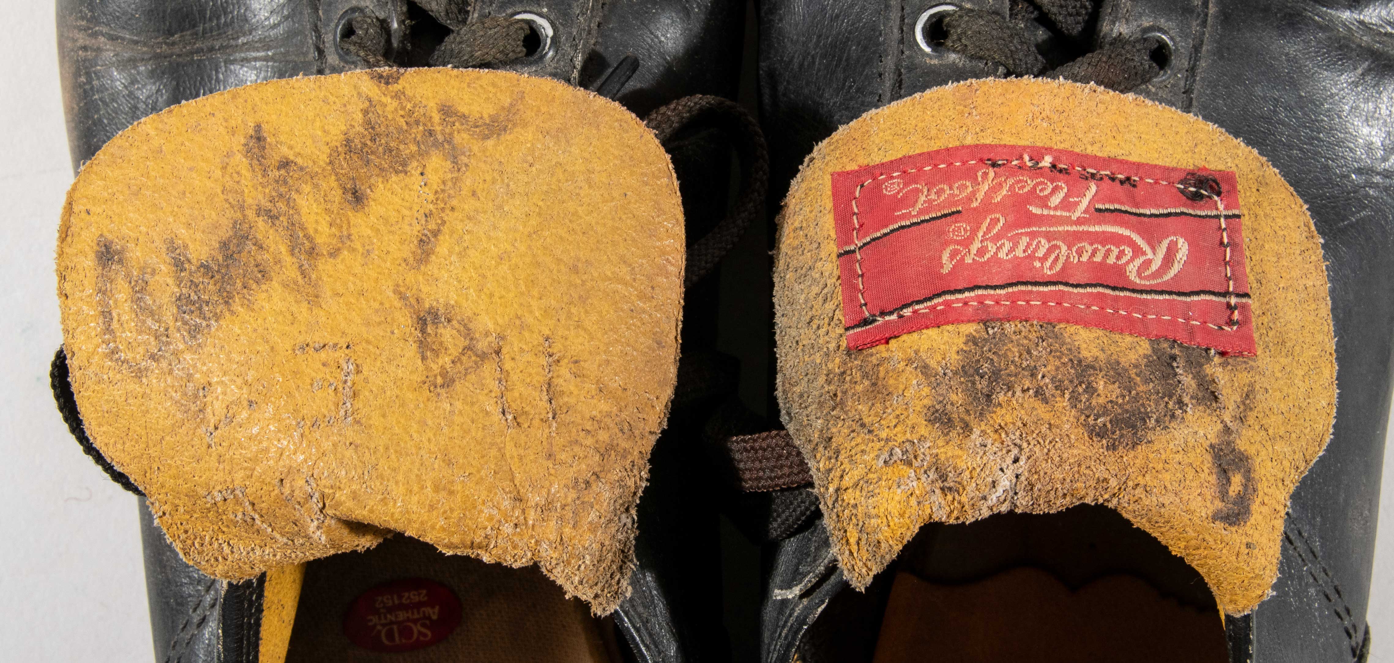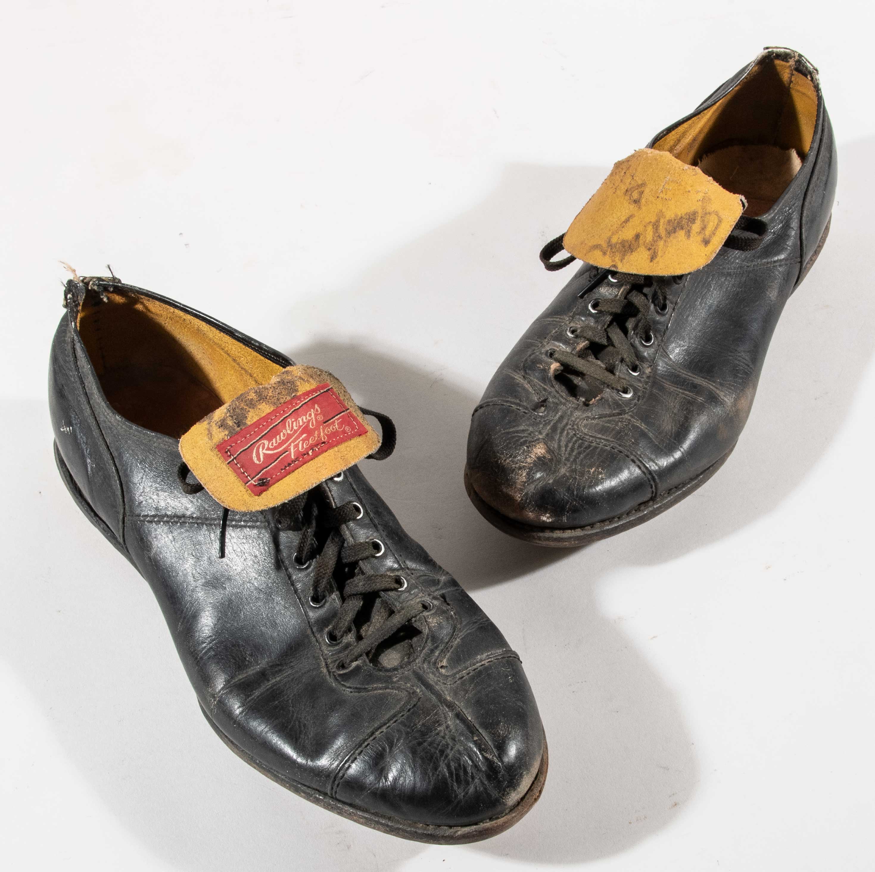 Description:Johnny Bench autographed professional model cleats c.1977 (Bench provenance). Pair of Rawlings Fleetfoot cleats show considerable use with wear throughout. Each has the number "5" written on the tongue in vintage black marker and both have been signed "Johnny Bench" in similar area. Both the numbers and autographs have faded over the years with the signatures now rating approx. 6-6/7 out of 10. Includes a copy of a handwritten and signed letter from Bench himself (on Reds stationary) in which he thanks the recipient for their participation in an auction (presumably a charity event) and encloses both the offered cleats and a glove stating that "they were used by me and only me during the 1977 Major League season." A note written across the top of this copy says "Original With Glove" explaining why it was not kept with these cleats. Bench had another stellar season in 1977 hitting (31) home runs and earning a Gold Glove for his defensive play. Includes auction LOA from JSA, LOA from Hunt Auctions, and aforementioned copy of the Bench handwritten and signed letter: EX