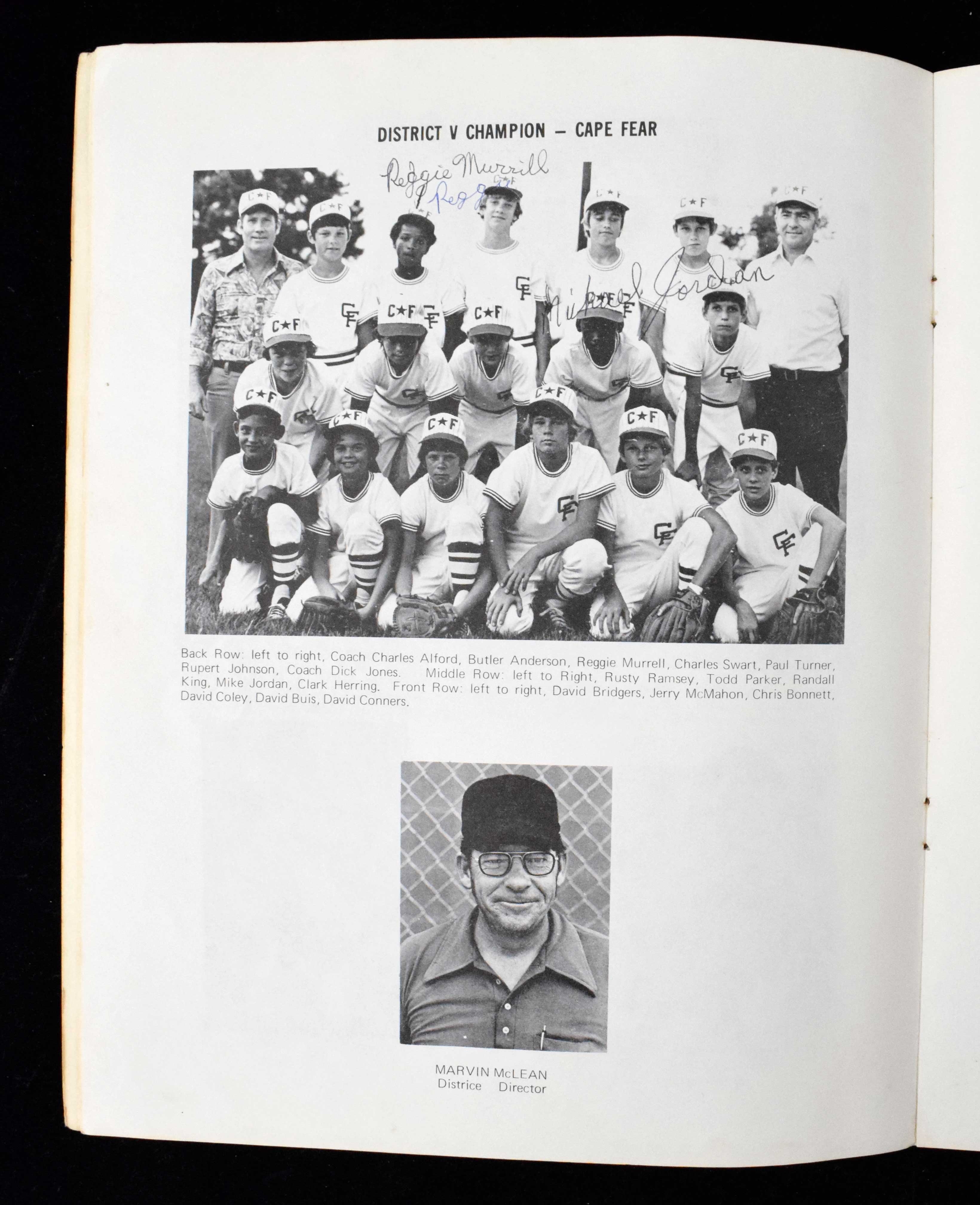 Description:UPDATED DESCRIPTION: Exceedingly scarce and likely unique 1975 Michael Jordan autographed Dixie Youth Baseball Tournament Program: Possible earliest known athletic related autograph at age 12. At a very young age, Michael Jordan excelled as an athlete which in hindsight is certainly not surprising. However, the sport in which he first earned accolades was baseball. Jordan moved with his family to Wilmington, NC very early in life and grew to become an outstanding player within youth baseball. At the age of 12, Michael was named “Mr. Baseball” of the prominent Dixie Youth Baseball Association by his peers and earned a berth to the related State Tournament in 1975. Jordan lived up to the billing belting a three-run home run and nearly pitching a no hitter although both in losing causes. Although very early in his athletic career, it is believed that the disappointment of this tournament loss contributed to his eventual turn towards the sport of basketball. Frank and Nina Mitchem had agreed to host one of the children from the visiting Cape Fear team given the long distance travel to the tournament. On the day the kids arrived for the tournament, Nina Mitchem was to pick up Michael Jordan as his designated host. Michael was one of two African American players on the Cape Fear team and as such asked if his teammate Reggie Murrill could also stay with the Mitchems. Nina agreed and the two young men stayed together at the Mitchem home. It was during that time that Nina asked both boys to sign the program to make them feel special! Participating teams within the tournament are pictured within the program including Jordan’s Cape Fear tear near the middle portion of the book. Jordan and his teammate Reggie Murrill have both signed the program in ballpoint ink, in the period. Jordan’s signature remains very fine rating 8 out of 10. Later in the program is a two-page spread with the tournament bracket outline having been filled in by unknown individual. The right page of the two page spread features written name and addresses for both Jordan and teammate Reggie Murrill likely for point of contact which is consistent with the family account of both players staying with the Mitchem family for the tournament. The program itself shows general moderate handling wear including some toning to the covers and few edge dings. Given the fact that the offered piece relates to the most significant athletic event in Jordan’s youth up until that point and his young age of twelve years old it is without question one of, if not the, earliest Michael Jordan athletic related autographs documented to exist. The additional presence of primary source provenance elevates this particular item to a very small population of significant Jordan related items from his youth and collegiate era. Outstanding scarcity being offered to the public for the first time. Includesletter of provenance from a Mitchem family member documenting it was signed by Michael Jordan in the presence of their family members. UPDATE: Due to the extraordinary unique nature of the signature and its dating period JSA has currently updated its option to "Inconclusive". To be clear, JSA is NOT rejecting the autograph and will continue to research teh matter further. It was observed to resemble a high school yearbook autograph of Jordan but again due to its very early dating period they determined that more research is needed. No other third party authentication company has reviewed the autograph. Hunt Auctions will includes a letter of authenticity and will fully guarantee the signature and its original provenance: Program: VG, Signature: NM-MT