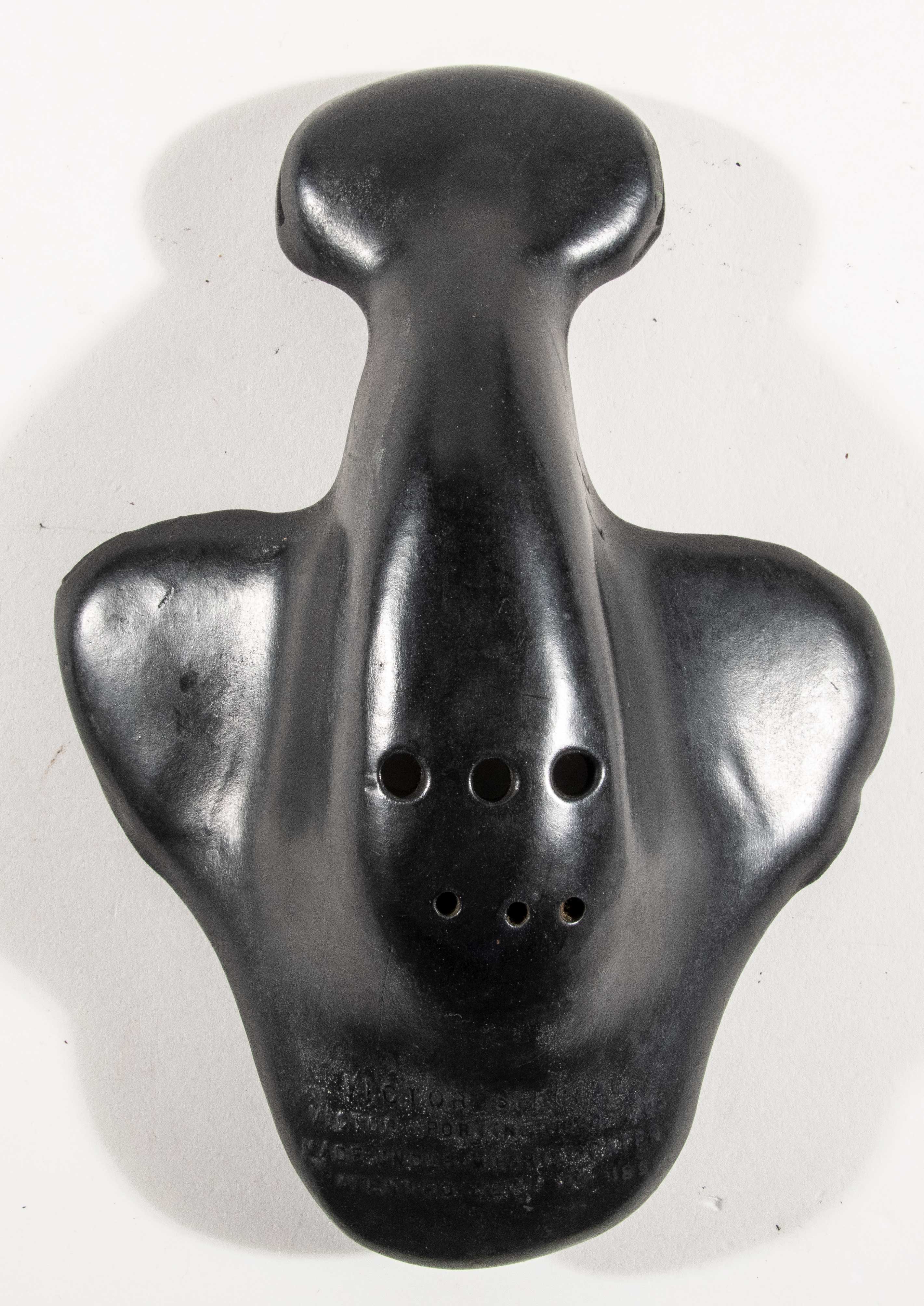 Description:Rare Victor Sporting Goods "batwing" nose guard c.1890s. Desirable early nose guard marked "Victor Sporting Goods" on the front with late 1891 patent date below. Use and some general age related wear throughout and the letter "H" is carved into one side. Small amount of residue on back. In nicer overall condition than typically encountered with regard originality of color: EX