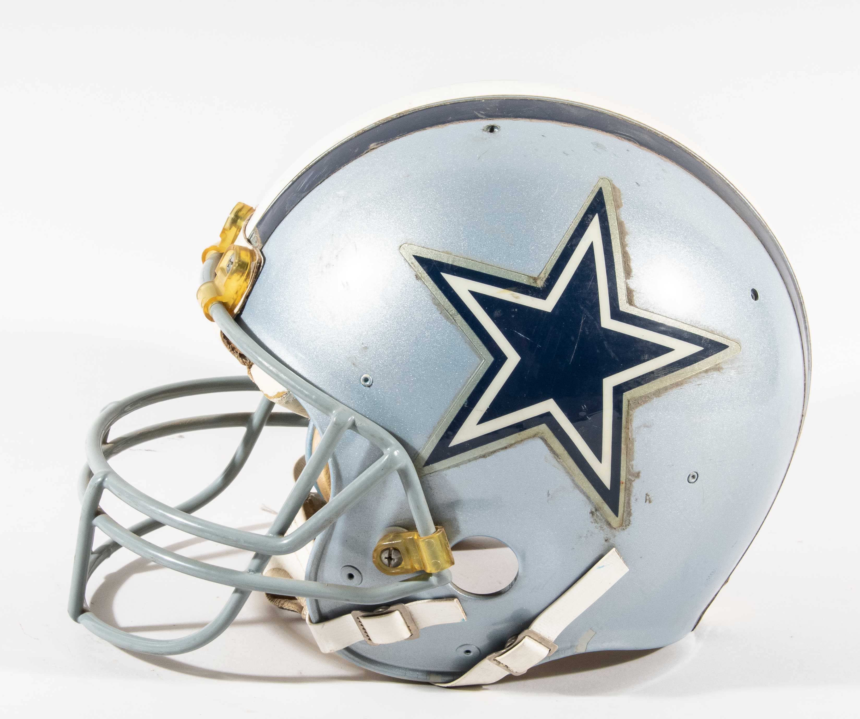 Description:Everson Walls professional model Dallas Cowboys helmet c.mid-late 1980s. Riddell model AF2 Cowboys helmet with "WALLS" Dymo label on the back. Outstanding use with expected scuff marks and surface wear. Chinstrap and interior padding remain intact. Includes LOA from Hunt Auctions: EX