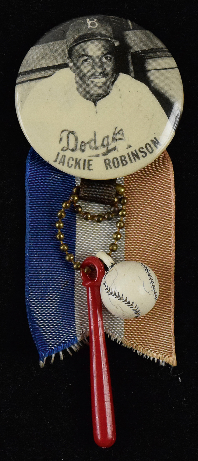 Description:Jackie Robinson souvenir pin c.1950s (EX) Vintage 1.75" pin having a touch of light imperfection to the front retains it's original ribbon and charms: EX