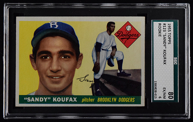 Description:1955 Topps #123 Sandy Koufax Rookie (SGC 80 EX/NM) Crisp card with little mentionable wear with front just a hint off center: SGC 80 EX/NM ($500-$750)