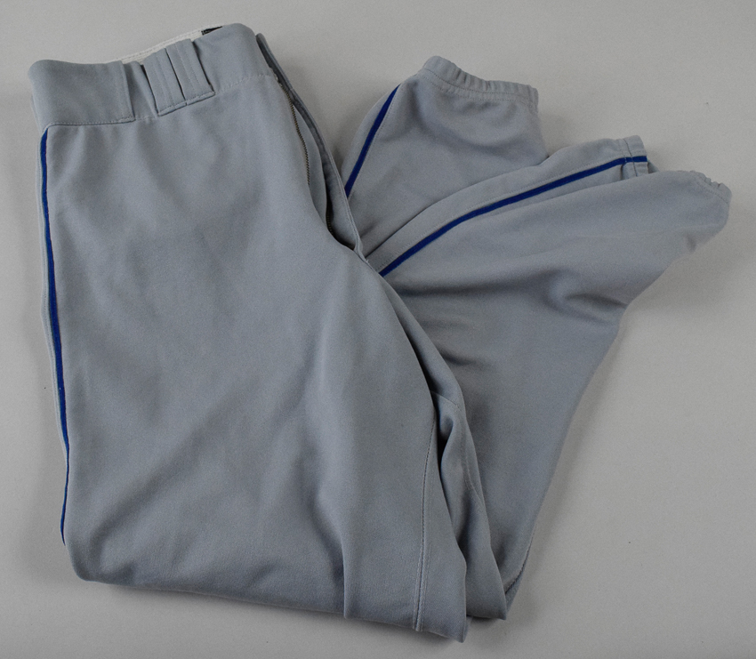Description:Bob Apodaca professional model New York Mets pants, c.1997-98 (EX/MT). AIS size 32x27 pants with "BH 32 X 27" "34 APODACA" tag sewn inside the waist. Light overall use/wash wear: EX/MT