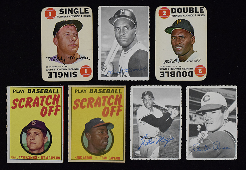 Description:1968 Topps Game, 1969 Topps Deckle Edge, and 1970/71 Topps Scratch-Offs sets (PR/FR-NM). Includes 1968 Topps Game 33-card set (Mickey Mantle PR/FR, other average EX-EX/MT overall); 1969 Topps Deckle Edge 33-card set (avg EX overall); and 1970-71 Topps Scratch-Offs 24-card set consisting of a mix from both the 1970 and 1971 issues (avg EX-EX/MT overall). Range: PR/FR-NM