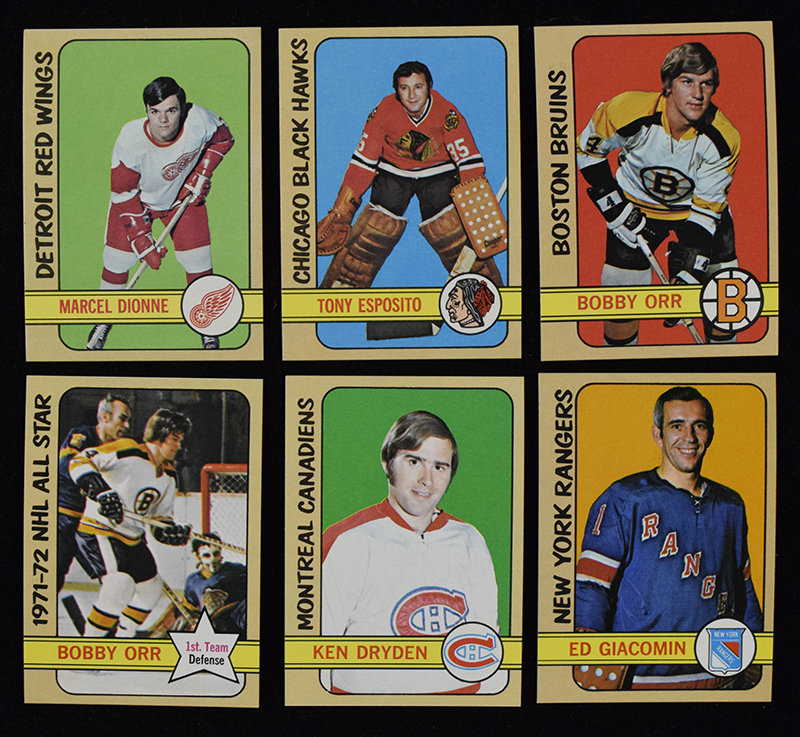 Description:1972-73 Topps Hockey card set (VG-NM/MT). Key cards grade: #s 100 Bobby Orr (NM), 122 Orr (NM-NM/MT), 160 Ken Dryden (NM-NM/MT). Remainder appear to average EX/MT-NM overall. Range: VG-NM/MT