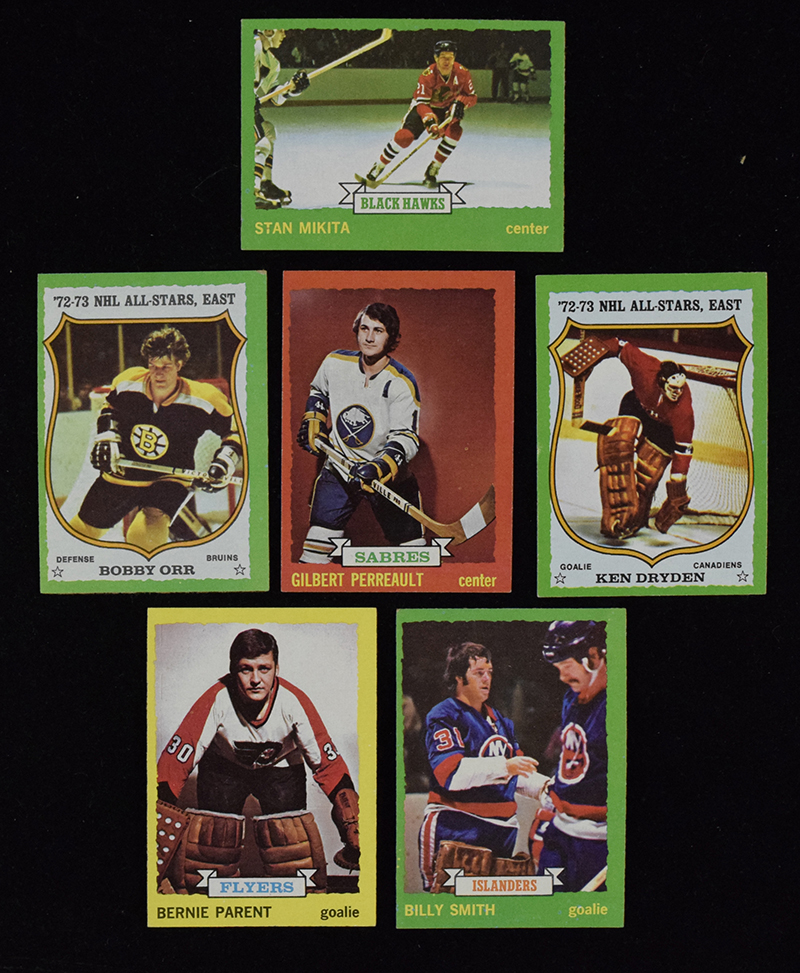 Description:1973-74 Topps Hockey card set (VG-NM). Key cards grade: #s 10 Ken Dryden (EX-EX/MT), 150 Bobby Orr (VG). Remainder appear to average EX-EX/MT overall. Range: VG-NM