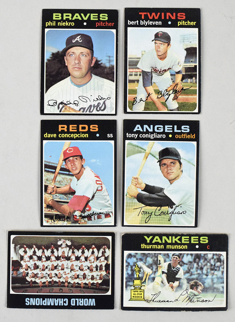 Description:Lot of (397) 1971 Topps Baseball cards (PR/FR-NM/MT). Mainly low number commons, with some minor and regional stars mixed in. Various conditions throughout the lot. Most appear to average EX overall (Munson VG). Range: PR/FR-NM/MT
