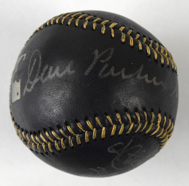 Description:Dave Parker & Andrew McCutchen dual-signed & inscribed black leather baseball - MLB Authenticated (NM). B.Selig ML black leather ball signed by Dave Parker with "NL MVP 78" inscription, and by Andrew McCutchen with "2013 NL MVP" inscription. Signatures rate 7 to 7/8 out of 10. MLB Authenticated serial #ed hologram sticker is affixed: NM