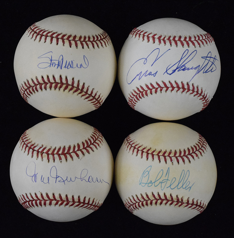 Description:Lot of (8) HOFers signed baseballs (EX-EX/MT). Includes L.Coleman NL ball signed by Stan Musial, G.Budig AL ball signed by Bob Feller, G.Budig AL ball signed by Bob Doerr, B.Brown AL ball signed by Enos Slaughter, B.Brown AL ball signed by Hal Newhouser, G.Budig AL ball signed by Brooks Robinson, B.Brown AL ball signed by Luis Aparicio, and B.Brown AL ball signed by Rollie Fingers. Signatures rate 7 to 9/10 (avg 8) out of 10. All have areas of light to moderate toning: EX-EX/MT