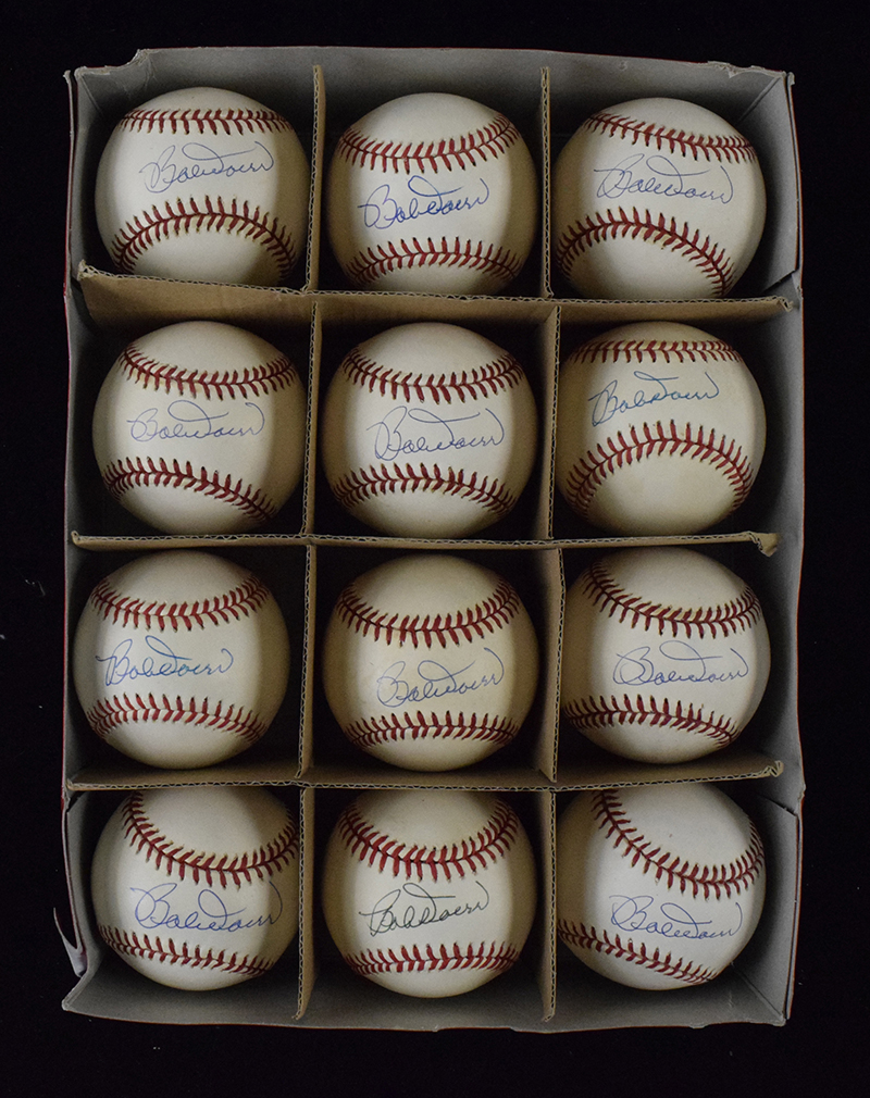 Description:Lot of (12) Bob Doerr signed G.Budig AL baseballs (EX-NM). Doerr signed the sweet spot of each ball in either blue or black ink. Signatures rate 7 to 9/10 (avg 8) out of 10. Most balls appear to average EX/MT overall due to minor toning. Range: EX-NM
