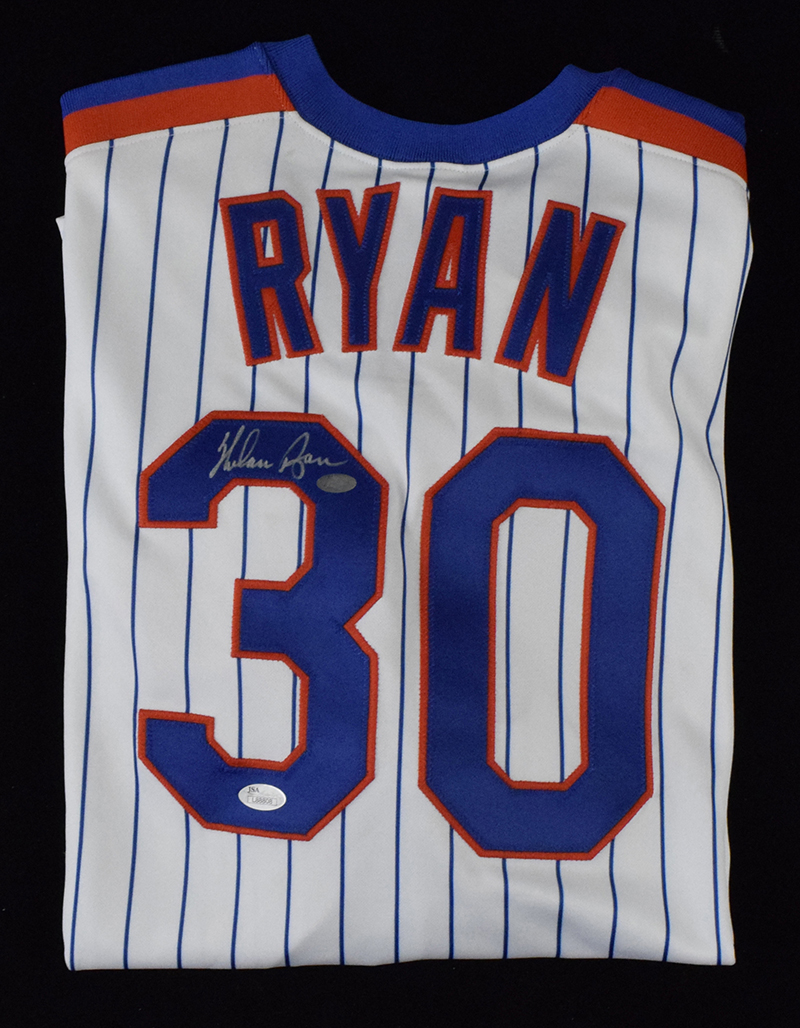 Description:Nolan Ryan signed New York Mets jersey - JSA & Ryan authenticated (NM). Majestic "Cooperstown Collection" size XL Mets #30 Nolan Ryan jersey signed by Ryan in silver marker. Signature rates 8/9 out of 10. Nolan Ryan and JSA stickers are affixed: NM