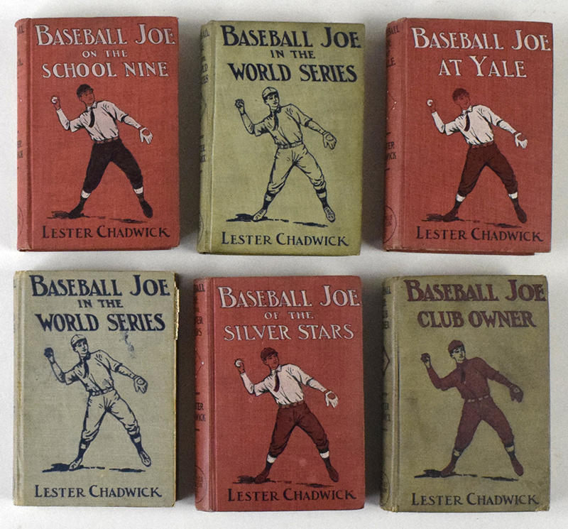 Description:Lot of (10) "Baseball Joe" books by Lester Chadwick from 1912-1926 (FR/GD-EX/MT). Includes 1912 Of The Silver Stars, 1912 On The School Nine, 1913 At Yale, 1914 In The Central League, 1915 In The Big League, (2) 1916 On The Giants (one is very low grade), (2) 1917 In The World Series (one is very low grade), and 1926 Club Owner. Most appear to average VG/EX overall with normal age/handling wear. Range: FR/GD-EX/MT