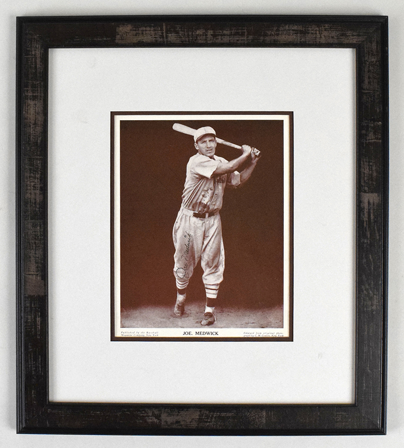 Description:Joe Medwick signed Baseball Magazine framed photo - JSA & PSA/DNA (EX/MT). Frame measures approx. 17"x19". Medwick signed the photo in black fountain pen. Signature rates 7/8 out of 10. Includes full LOA from PSA/DNA and a previous auction LOA from JSA. Due to framing, complete condition is unknown: EX/MT appearance
