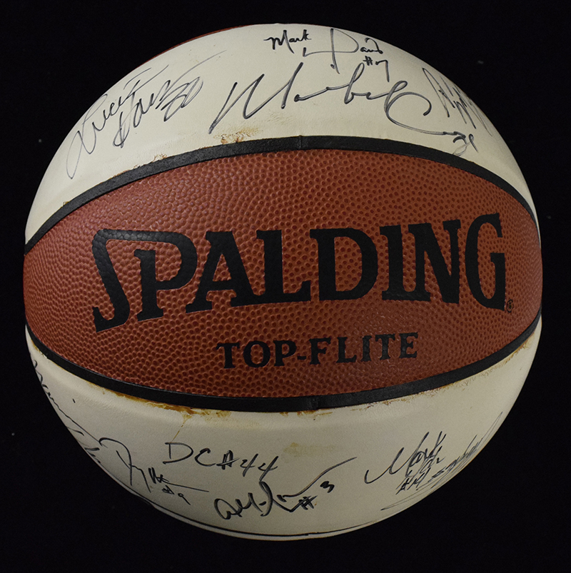 Description:1996-97 Philadelphia 76ers team signed basketball with rookie Iverson (EX/MT). Spalding white panel basketball signed by (13) including Johnny Davis, Maurice Cheeks (signed twice), Allen Iverson, Jerry Stackhouse, Derrick Coleman, Clarence Weatherspoon, Michael Cage, Mark Davis, Scott Williams, Don MacLean, Lucious Harris, Doug Overton, and Mark Hendrickson. Signatures rate 6/7 to 9/10 (avg 8) out of 10. Scattered discoloration along the edges of the white panels: EX/MT