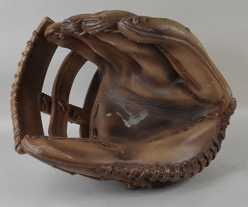Description:Enormous figural baseball glove (VG-EX) Oversized display piece stands approx. (2) feet off the ground when upright and measures 19" across. Mild scattered surface wear with some areas of paint loss/chipping: VG-EX