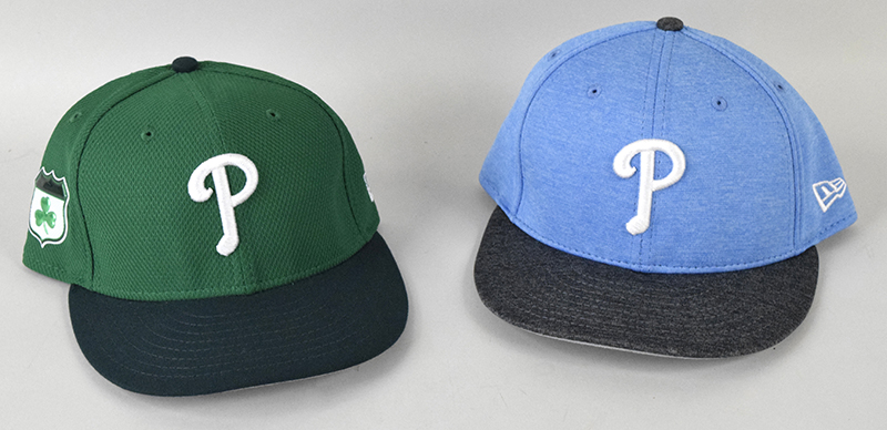 Description:Lot of (3) 2017 Philadelphia Phillies game worn hats (varying styles) (EX) Includes May 29, 2017 Juan Samuel Memorial Day game worn hat with "8" written inside (MLB Authentication JB611864); May 17, 2017 Phillies Spring Training hat with "10" written inside as worn by Larry Bowa (hologram JC161224); June 17 and 18, 2017 Ty Kelly game used hat with "15" written under the brim (hologram JB976919). This is a powder blue style as worn for Father's Day weekend: EX