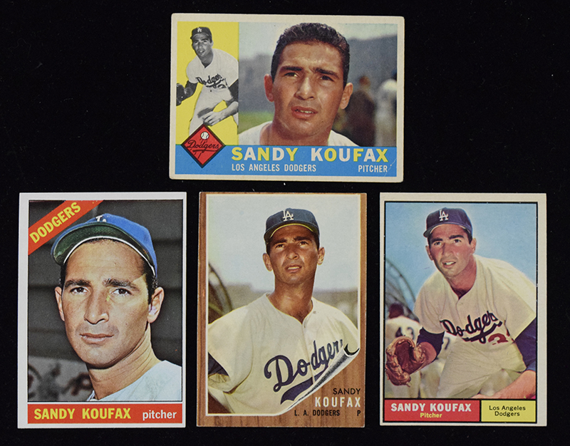 Lot of (8) 1960-1966 Sandy Koufax Topps baseball cards (GD-EX) Includes 1960 #343 (GD), 1961 #207 (VG/EX OC), 1961 #344 (EX OC), 1962 #5 (VG/EX OC), 1963 #210 (VG), 1964 #1 (EX OC), 1964 #136 (VG/EX), 1966 #100 (VG/EX OC): GD-EX