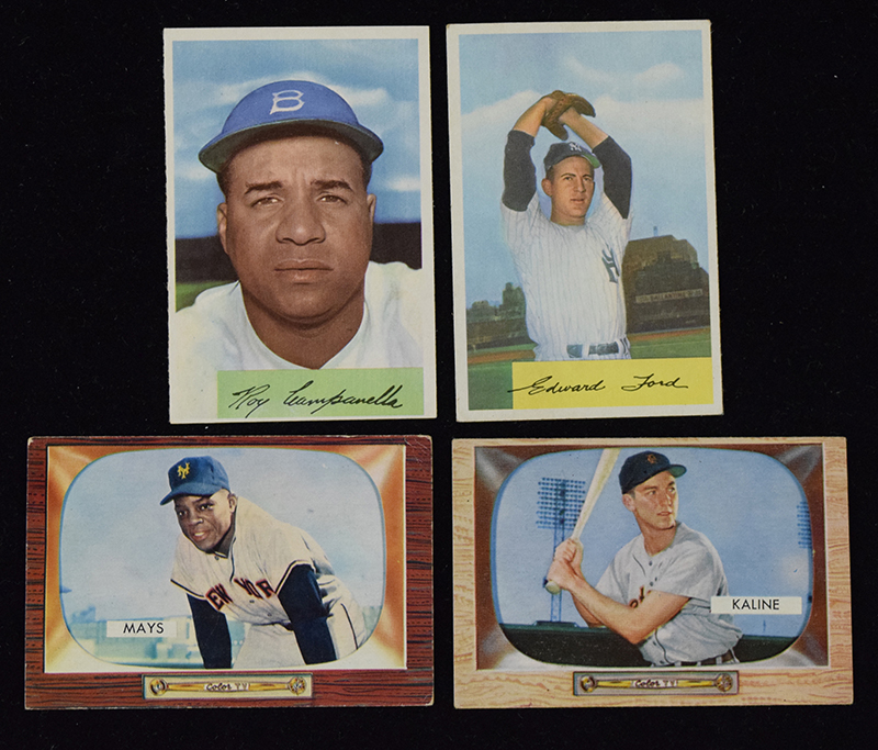 Description:Lot of (10) 1954 and 1955 Bowman baseball cards (mostly HOFers) (VG-EX/MT) Includes 1954 Bowman #1 Rizzuto (EX OC), 45 Kiner (VG/EX-EX), 50 Kell (EX OC), 90 Campanella (EX/MT OC), 104, 138 Hodges (VG), and 177 Ford (VG); 1955 Bowman #9, 23 Kaline (EX OC), and 184 Mays (VG): VG-EX/MT