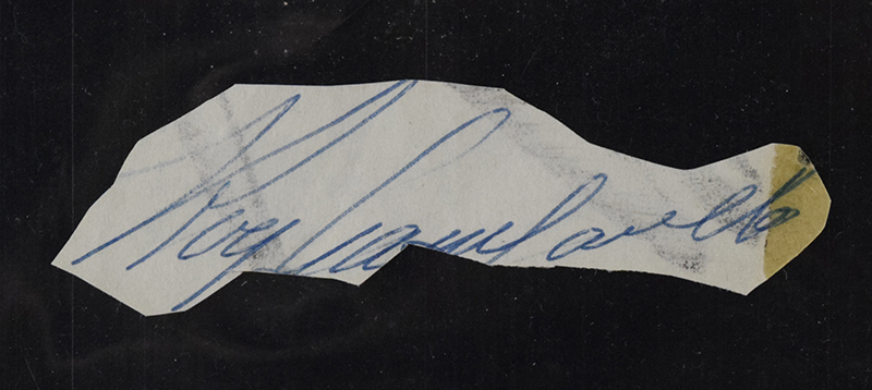 Description:Roy Campanella autograph (see description) Blue ink pre-accident signature on paper slip has been very closely cut to the autograph with some resulting loss. There is a small piece on toned tape along the right edge: see description