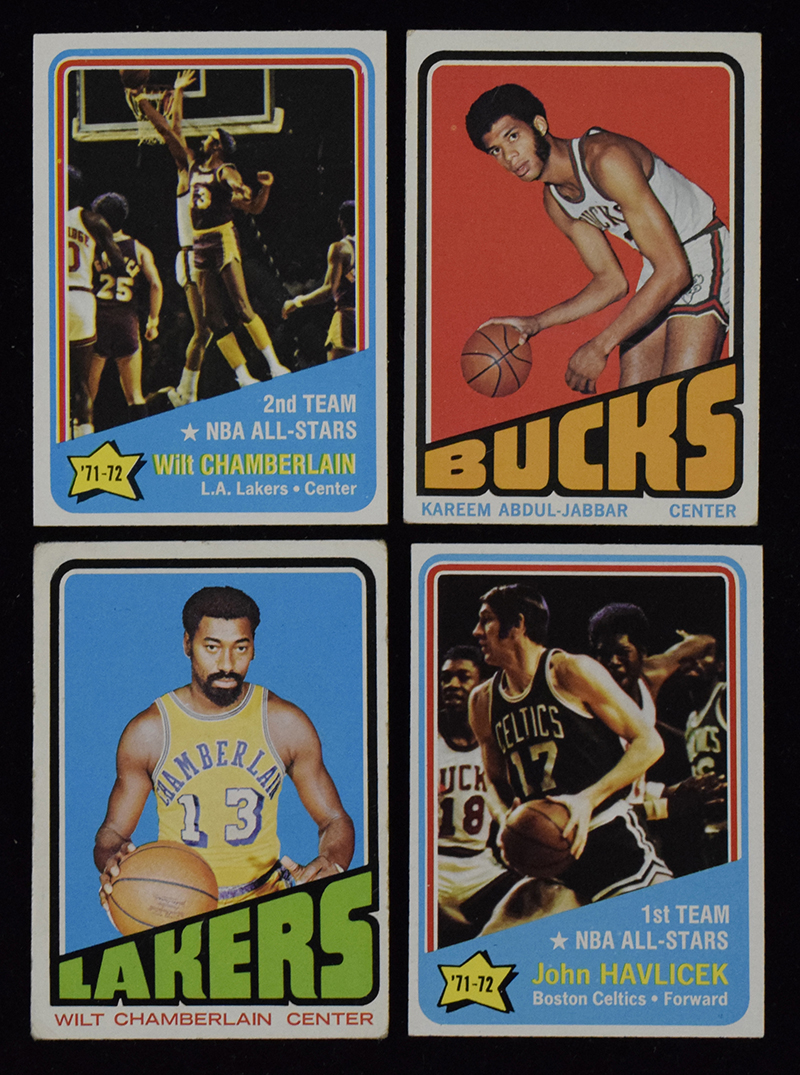 Description:1972-73 Topps Basketball lot of (248) cards (Mostly EX or better) Nice lot of mostly high grade commons with some Hall of Famers and stars among the better condition cards. This portion of the lot, which is the majority, is in EX or better avg. condition with some as strong as NM and includes #30 Hawkins (2), 73 Monroe, 80 Lanier, 105 DeBusschere, 150 Hayes, 161 Havlicek, 164 West, and 168 Chamberlain. There are some lower grade cards mixed in incl. #1 Chamberlain (GD), 75 West (GD), 100 Jabbar (VG/EX): Mostly EX or better