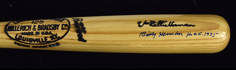 Description:Billy Herman signed and inscribed replica model baseball bat (NM). 34" Louisville Slugger K55 Billy Herman model bat signed by Herman in blue marker with "HOF 1975" inscription. Signature rates 9 out of 10: NM