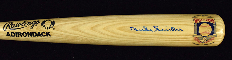 Duke Snider signed Baseball HOF logo bat (NM). 35" Rawlings-Adirondack HOF bat signed by Snider in blue marker. Signature rates 8/9 out of 10: NM