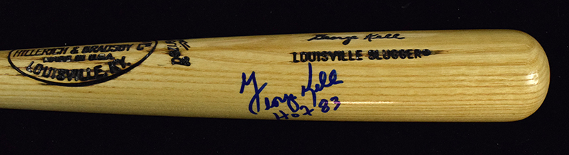 Description:George Kell signed and inscribed replica model baseball bat (NM). 34" Louisville Slugger M159 George Kell replica model bat signed by Kell in blue marker with "HOF 83" inscription. Signature rates 8/9 out of 10: NM