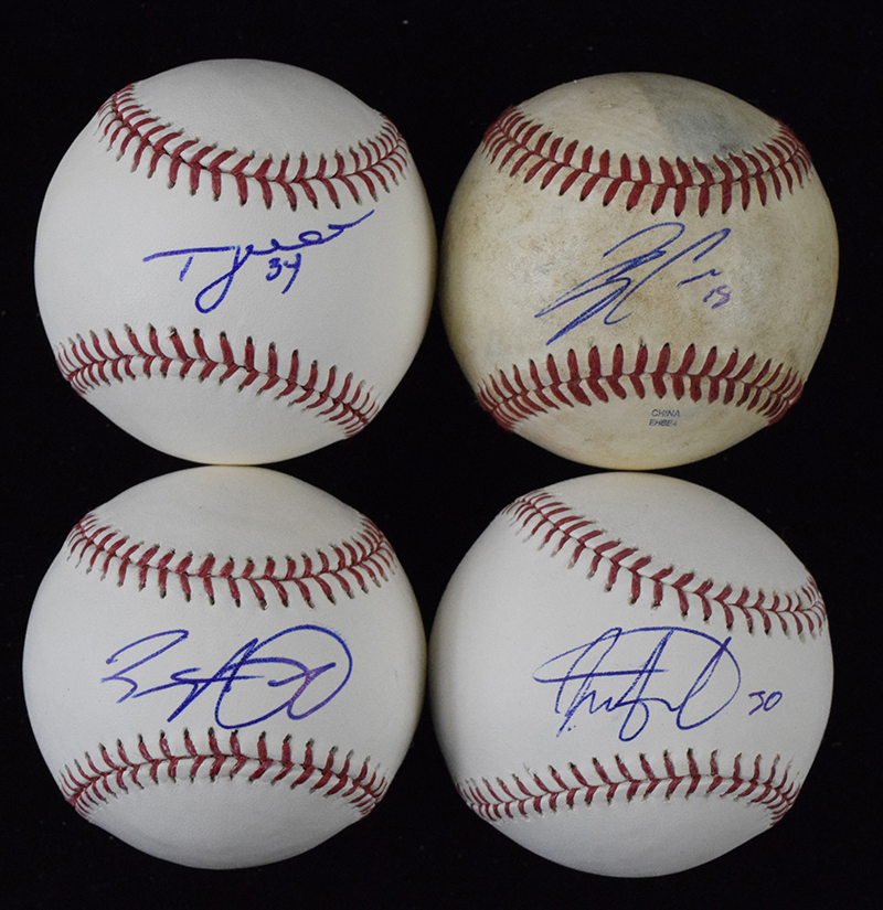 Description:Lot of (58) signed baseballs (VG-NM/MT). Mix of signed MLB balls and minor league balls. Includes Ray Burris, Jair Jurrjens, Gary Disarcina, Brock Holt, Brett Lawrie, Cody Asche, Michael Tonkin, John Lannan, Ramon Flores, Zach Walters, Bruce Rondon, Joely Rodriguez, Jesse Biddle, J.R. Murphy, Eduardo Escobar, Christian Vazquez, Gorkys Hernandez, Jonathan Pettibone, A.J. Cole, T.J. House, Carlos Rivero, and others. Most balls appear to average EX/MT overall, although some have wear from use: VG-NM/MT