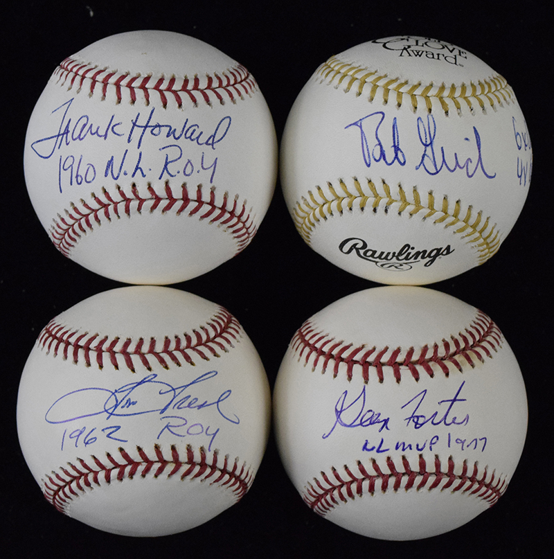Description:Lot of (11) signed baseballs (EX-NM/MT). All are signed on B.Selig ML balls unless noted otherwise. Includes Tom Tresh with "1962 ROY" inscription, George Foster with "NL MVP 1977" inscription, Frank Howard with "1960 NL ROY" inscription, Greg Luzinski, Bob Grich with "6X All Star" "4X Gold Glove" inscriptions (Rawlings Gold Glove Award ball), Sal Bando, Dave Kingman (toned B.Brown AL ball), Bill Russell with "1981 WS" inscription, Luis Tiant with "Mantle's Last Hit" inscription, Tim Foli, and Bobby Valentine. Signatures rate 6/7 (Kingman) to 9/10 (avg 8) out of 10: EX-NM/MT