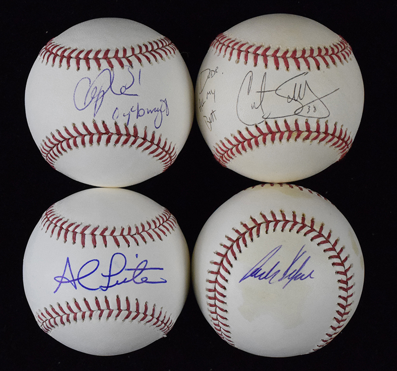 Description:Lot of (11) signed baseballs (VG/EX-NM/MT). All are signed on B.Selig ML balls unless noted otherwise. Includes Cliff Lee with "Cy Young 08" inscription, Curt Schilling (L.Coleman NL ball), Carlos Delgado (toned), Jason Bay, Al Leiter, Dontrelle Willis, Nick Johnson, Luis Sojo with "96, 98, 99, 00 WSC" inscription (used International League ball with ticket stub), Kosuke Fukudome, Chien-Ming Wang (used International League ball with ticket stub), and Carlos Zambrano. Signatures rate 7/8 to 9/10 out of 10: VG/EX-NM/MT