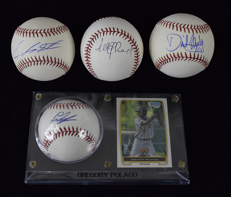 Description:Lot of (7) current player signed baseballs (VG-NM/MT). Includes B.Selig ML ball signed by Andrew McCutchen, B.Selig ML ball signed by Gregory Polanco (with 2012 Bowman Chrome rookie card), B.Selig ML ball signed by Carlos Santana, B.Selig ML ball signed by Daniel Murphy, B.Selig ML ball signed by Devin Mesoraco, official International League ball (used) signed by Andrew Miller (with ticket stub), and B.Selig ML ball signed by Desmond Jennings. Signatures rate 7 to 9/10 (avg 8) out of 10: VG-NM/MT