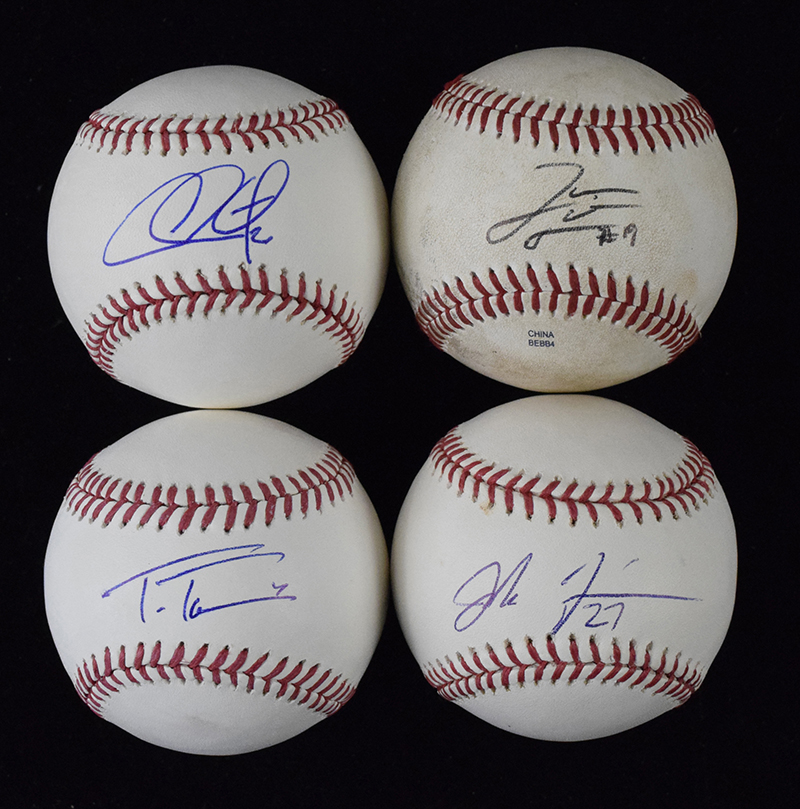 Description:Lot of (7) current player signed baseballs (VG/EX-NM/MT). Includes an official Florida State League ball (used) signed by Jameson Taillon, R.Manfred ML ball signed by Trea Turner, B.Selig ML ball signed by Chase Utley, B.Selig ML ball signed by Jordan Zimmerman, B.Selig ML ball signed by Mark Trumbo, B.Selig ML ball signed by Michael Taylor with "8-12-09" cycle date inscription, and B.Selig ML ball signed by Matt Wieters. Signatures rate 7/8 to 9/10 out of 10: VG/EX-NM/MT