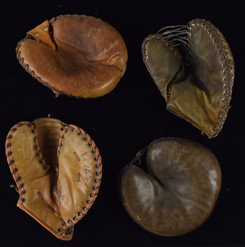 Description:Lot of (23) vintage baseball gloves, c.1920s-80s (FR/GD-EX/MT). Player endorsed models include Phil Cavarretta, Del Crandall, Ferris Fain, Bill Skowron, Tom Tresh, Nick Etten, Charley Hargreaves, Pinky Higgins, Johnny Podres, Hank Thompson, Tommy Helms, Eddie Kasko, Don Blasingame, Ron Cey, and Kirk Gibson. Also includes (8) non-player endorsed gloves, or gloves too worn to see a name. Most appear to average VG overall due to use/age wear. Range: FR/GD-EX/MT