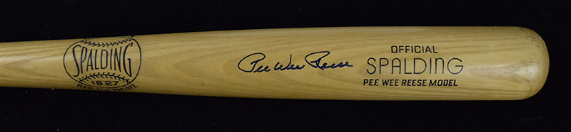 Description:Pee Wee Reese signed vintage store model baseball bat (NM).35" Spalding 1827 Pee Wee Reese model bat signed by Reese in blue marker. Signature rates 8/9 out of 10. Minor surface wear, and a length label taped on the knob: NM overall