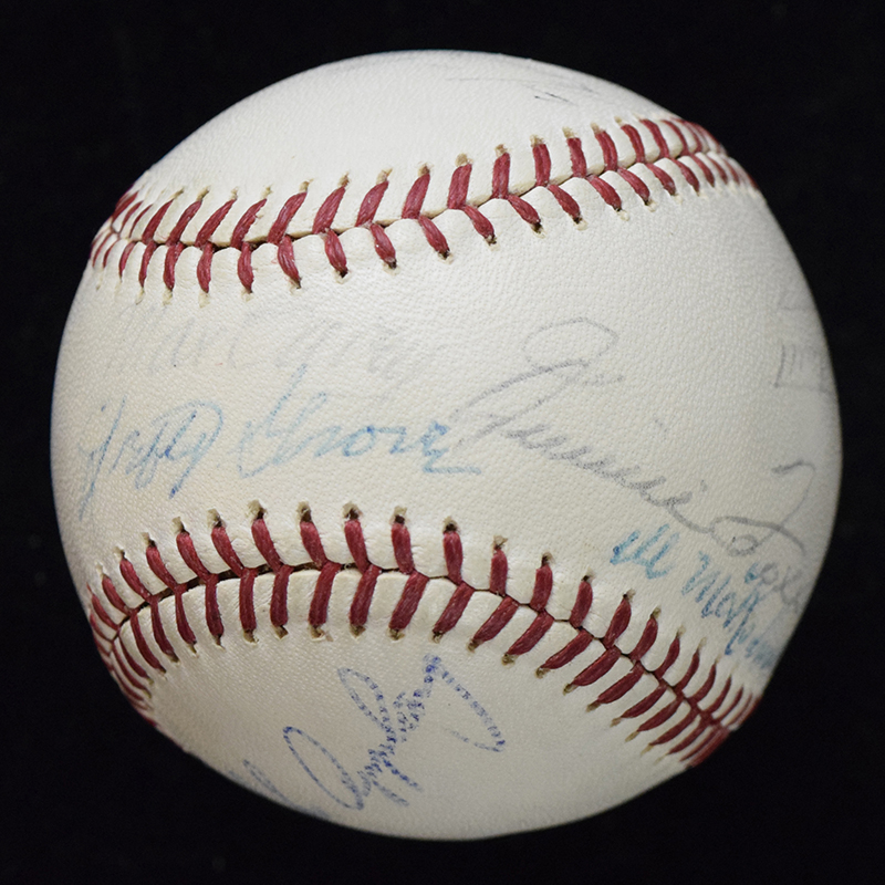 Description:Hall of Fame autographed baseball c.1960s (full JSA LOA) (Sigs. EX-NM, Ball EX/MT)Reach J.Cronin OAL ball has been signed by (10) incl. Foxx, Wheat, Roush, Manush, Appling, Terry, Grove, Carey, McKechnie, and Hartnett. Ink signatures rate 7 to 8 out of 10. Ball is a shade off white with a small area of toning over stampings. Includes full LOAs from PSA/DNA and JSA: Sigs. EX-NM, Ball EX/MT ($750-$1,250)