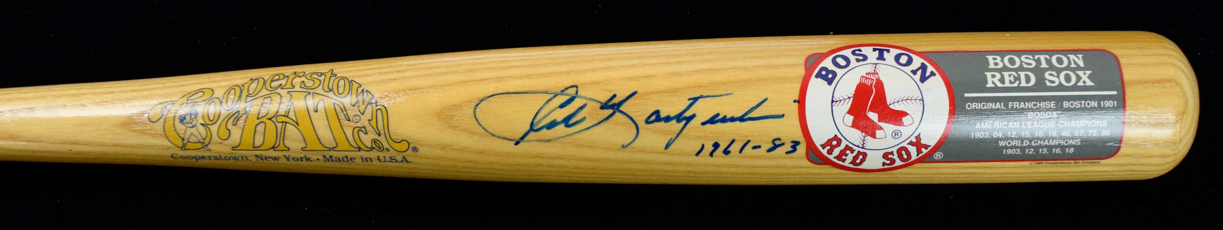 Description:Carl Yastrzemski autographed Boston Red Sox commemorative bat (NM) Cooperstown Bat Co. Stadium Series bat has been signed by Yastrzemski (marker, 8 out of 10) and inscribed with the years he spent with the Red Sox: NM