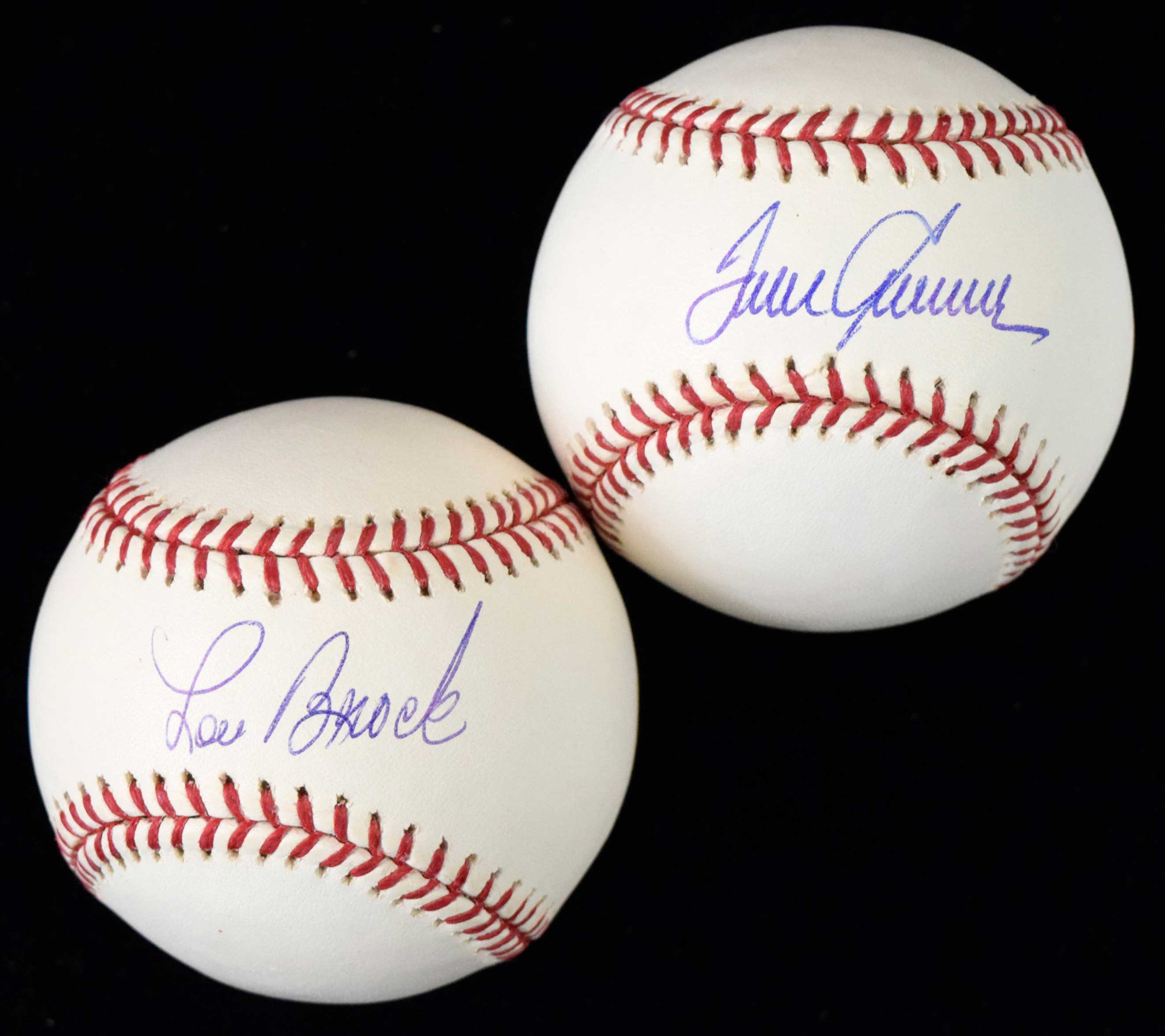 Description:Tom Seaver and Lou Brock autographed PSA graded baseballs (PSA "9" and "9.5") Rawlings B.Selig OML balls are each signed in ink with Seaver graded "9.5" overall by PSA and Brock graded "9." Each includes the cube and COA from PSA (cubes are no longer sealed): PSA "9" and "9.5"