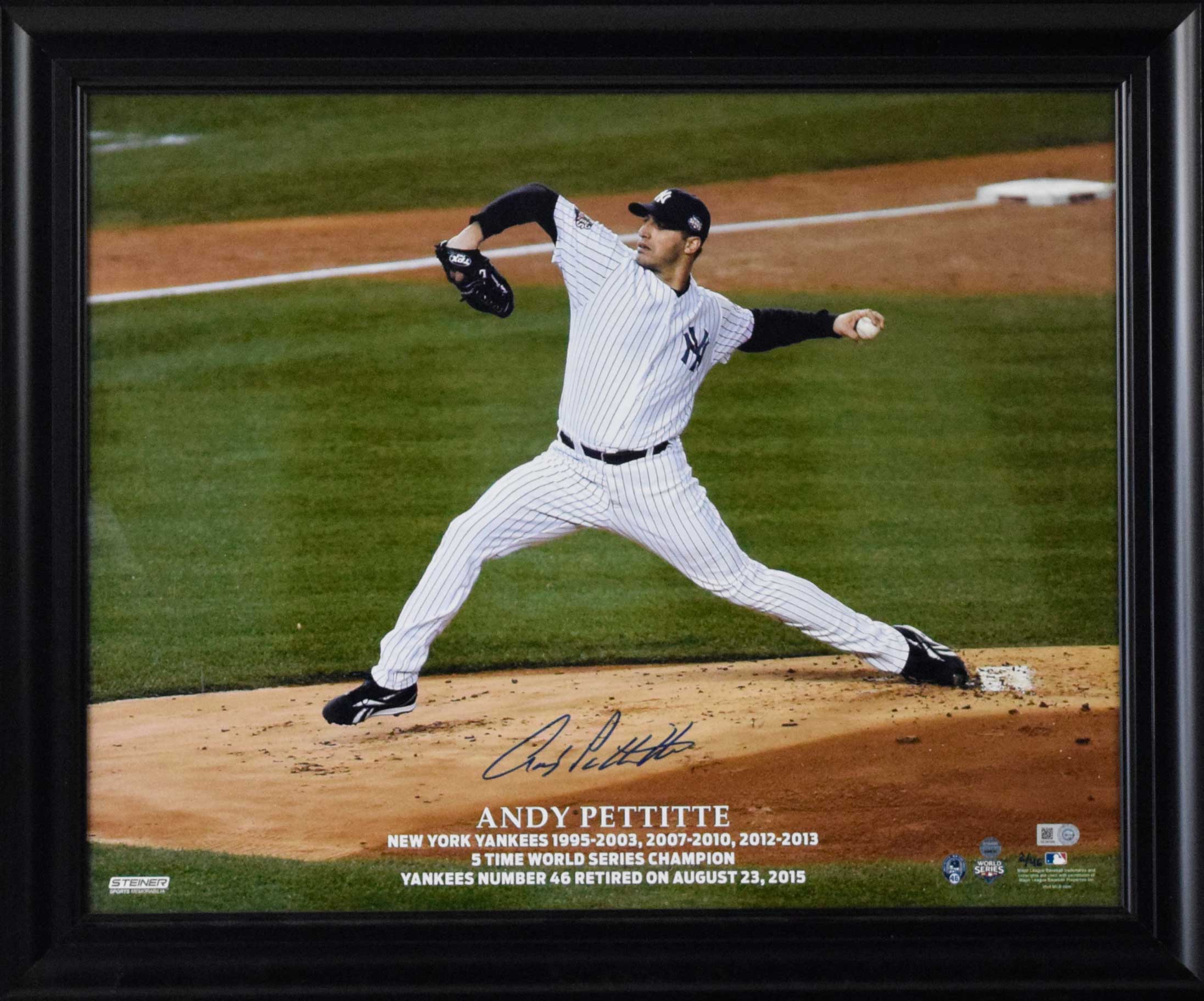 Description:Andy Pettitte signed limited edition 16"x20" photograph ("2/46") (MLB Authentication) (NM) Signed in marker rating 10 out of 10 and framed to slightly larger dimensions for display: NM