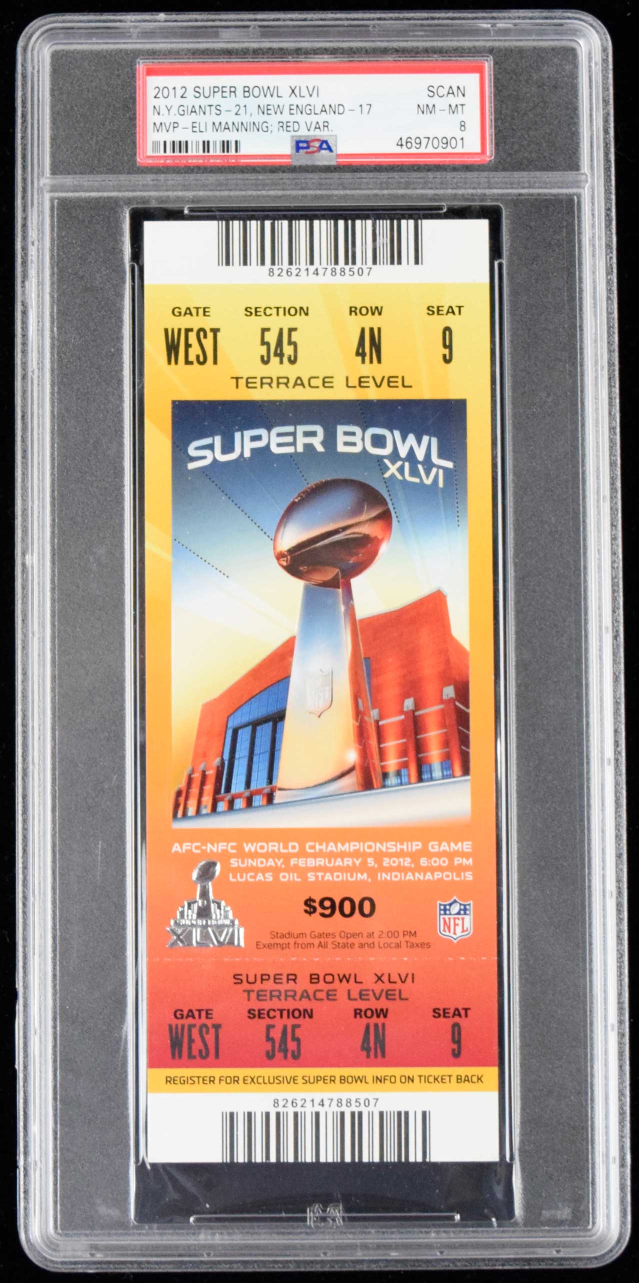 Super Bowl XLVI full ticket (PSA NM-MT 8) High grade full ticket: PSA NM-MT 8